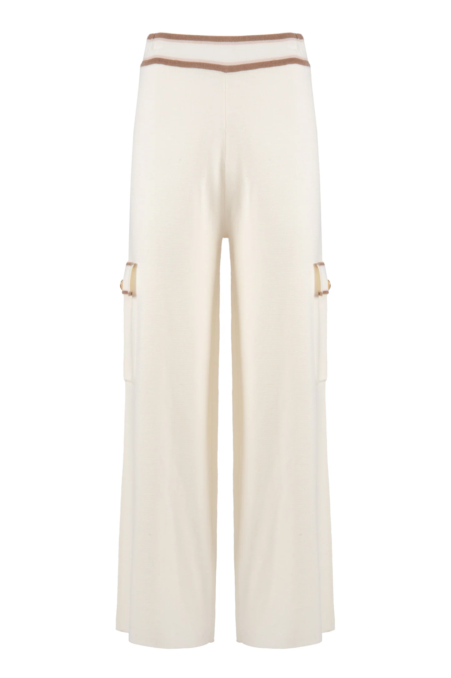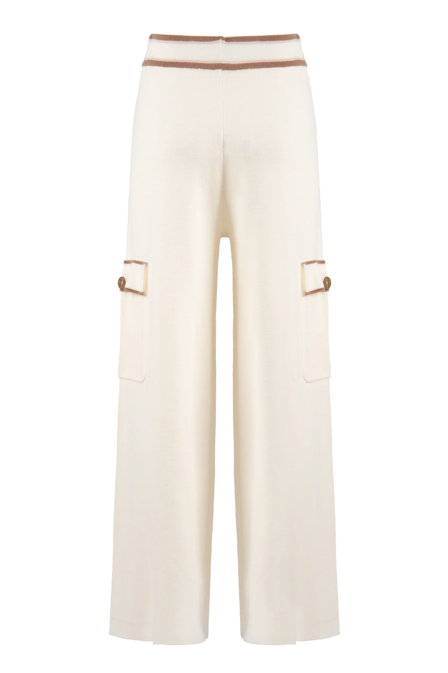 Pantalone in morbida maglia Presenta delle comode tasche al ginocchio con eleganti bottoni dorati Composizione: 50% Lana 50% Acrilico