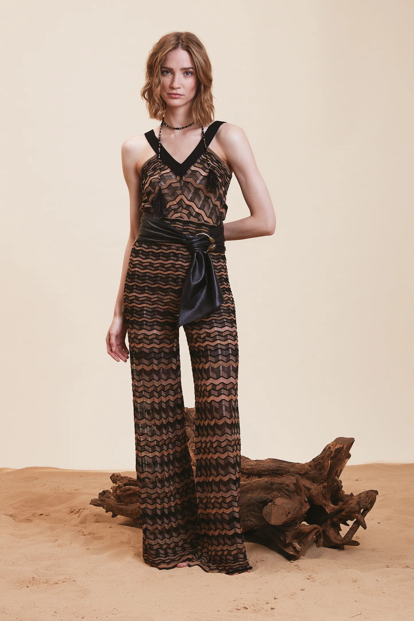 I Pantaloni in maglia Yano NENETTE, sono pantaloni in maglia multicolore in misto viscosa, vita alta ed elasticizzato in vita per una migliore vestibilitร . Ideale a completo con il suo top Miur e il suo cardigan Ceci.