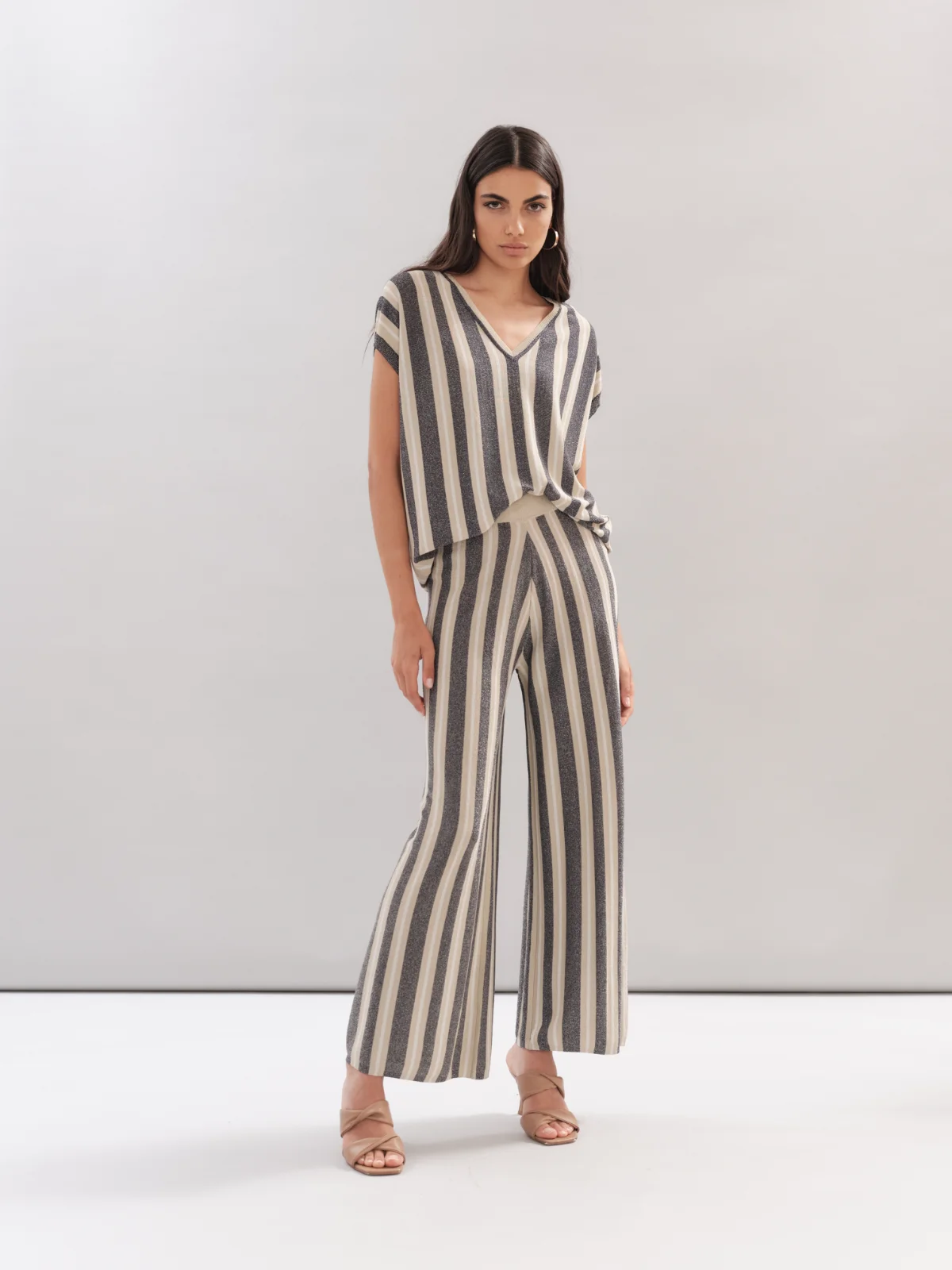PANTALONI WHITE WISE RIGHE LUREX TONI DEL BLU