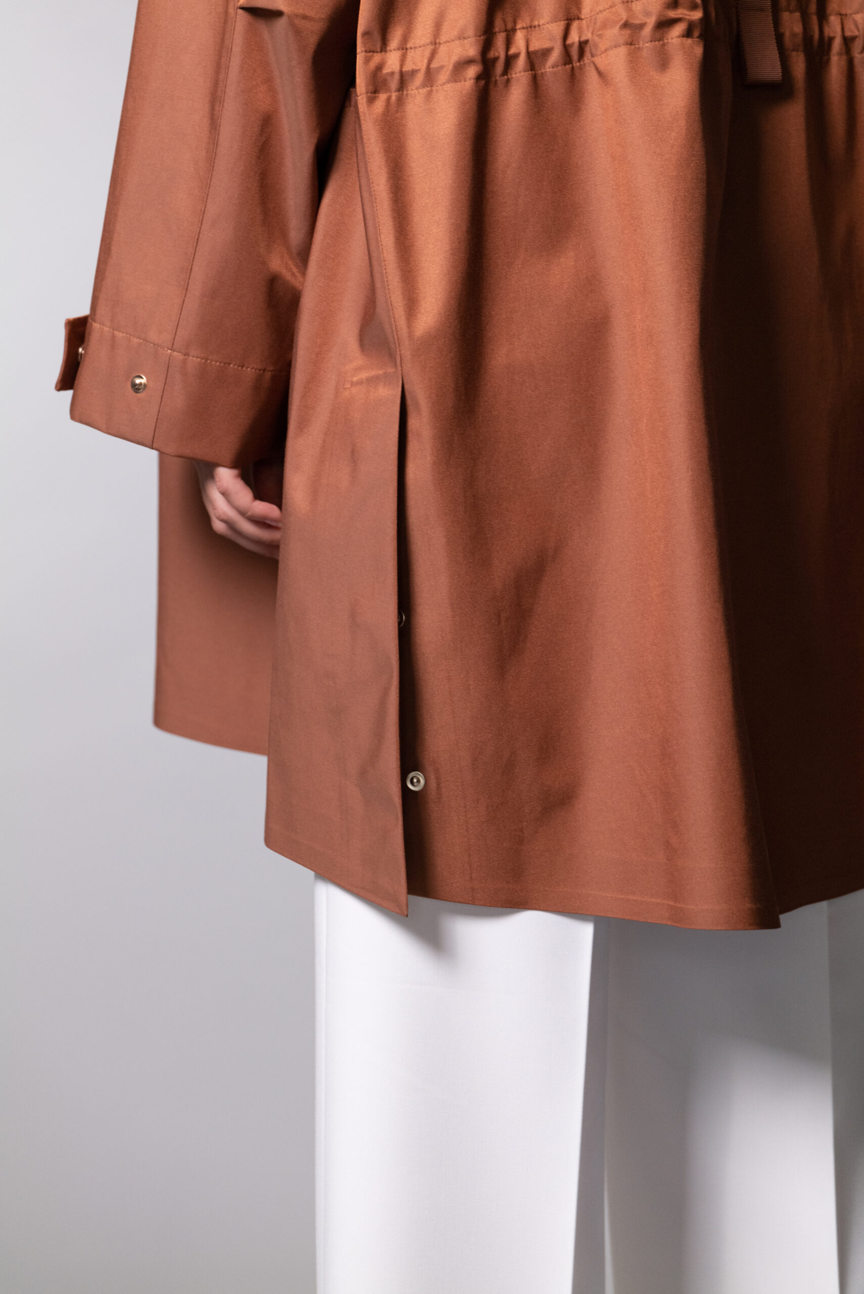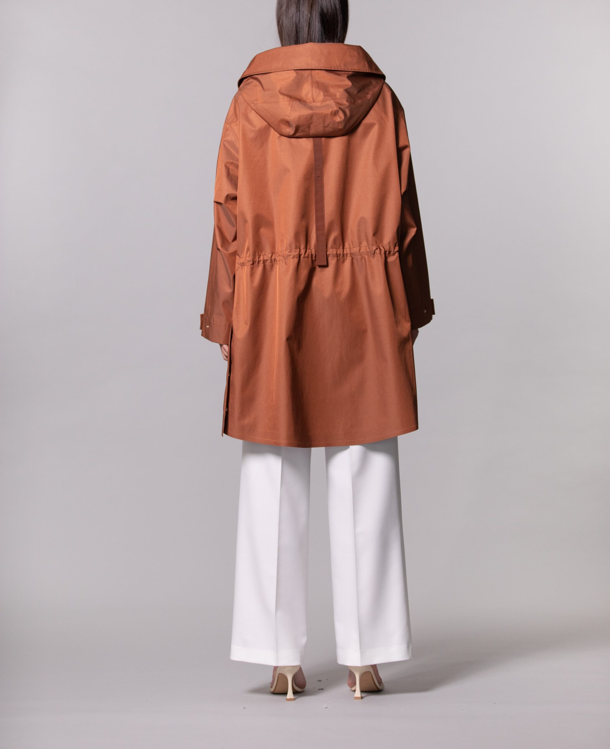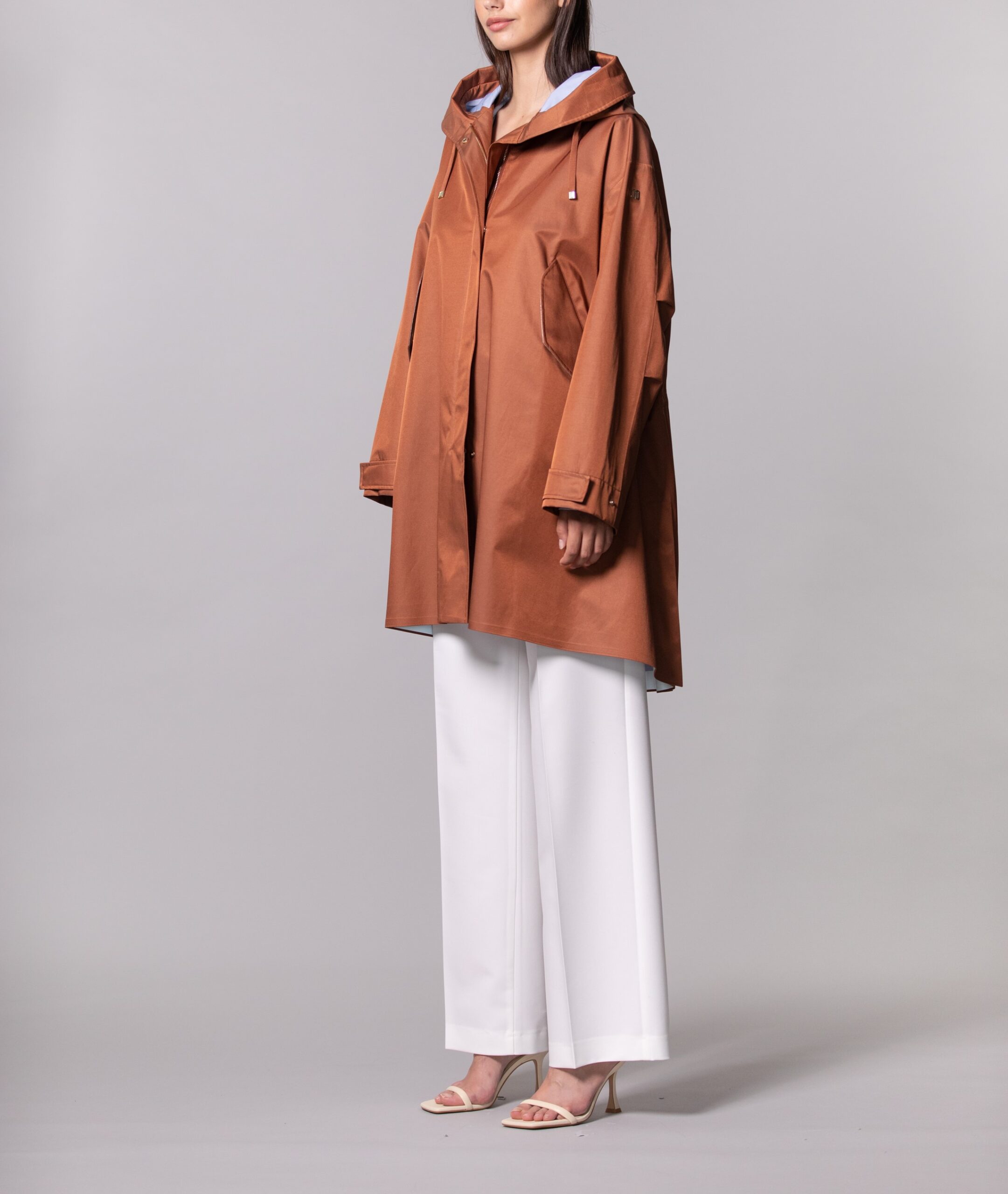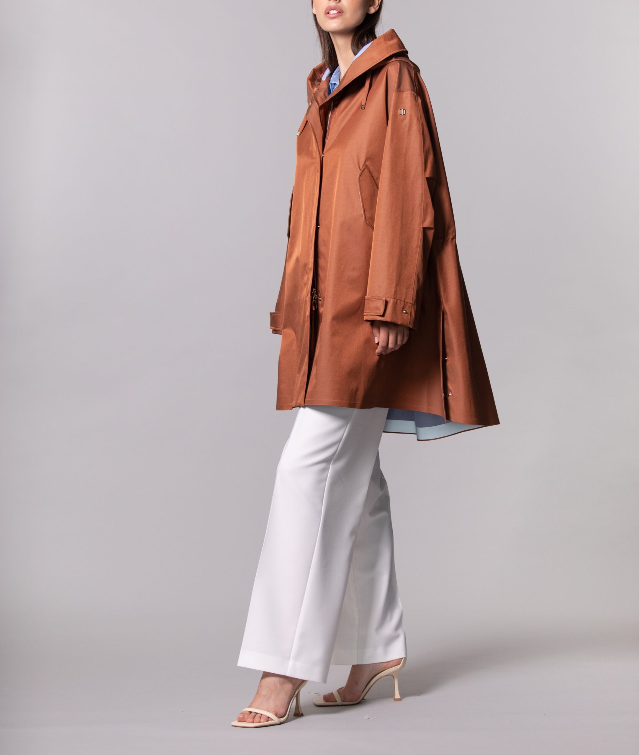 Il Parka over Anita DUNO, รจ un parka oversize con interno in colore a contrasto. Doppia chiusura con zip doppio cursore ed automatici nascosti. Coulisse al cappuccio e alla vita per regolarne la vestibilitร . Il capo รจ caratterizzato da spacchi laterali chiudibili con automatici nascosti. Manica ampia regolabile al fondo con laccio e dal particolare del nastro applicato posteriormente nella parte alta centrale. Dettagli in lino spalmato nella parte nascosta del bordo cappuccio e delle pattine delle tasche e dettaglio catarifrangente sul fondo interno.