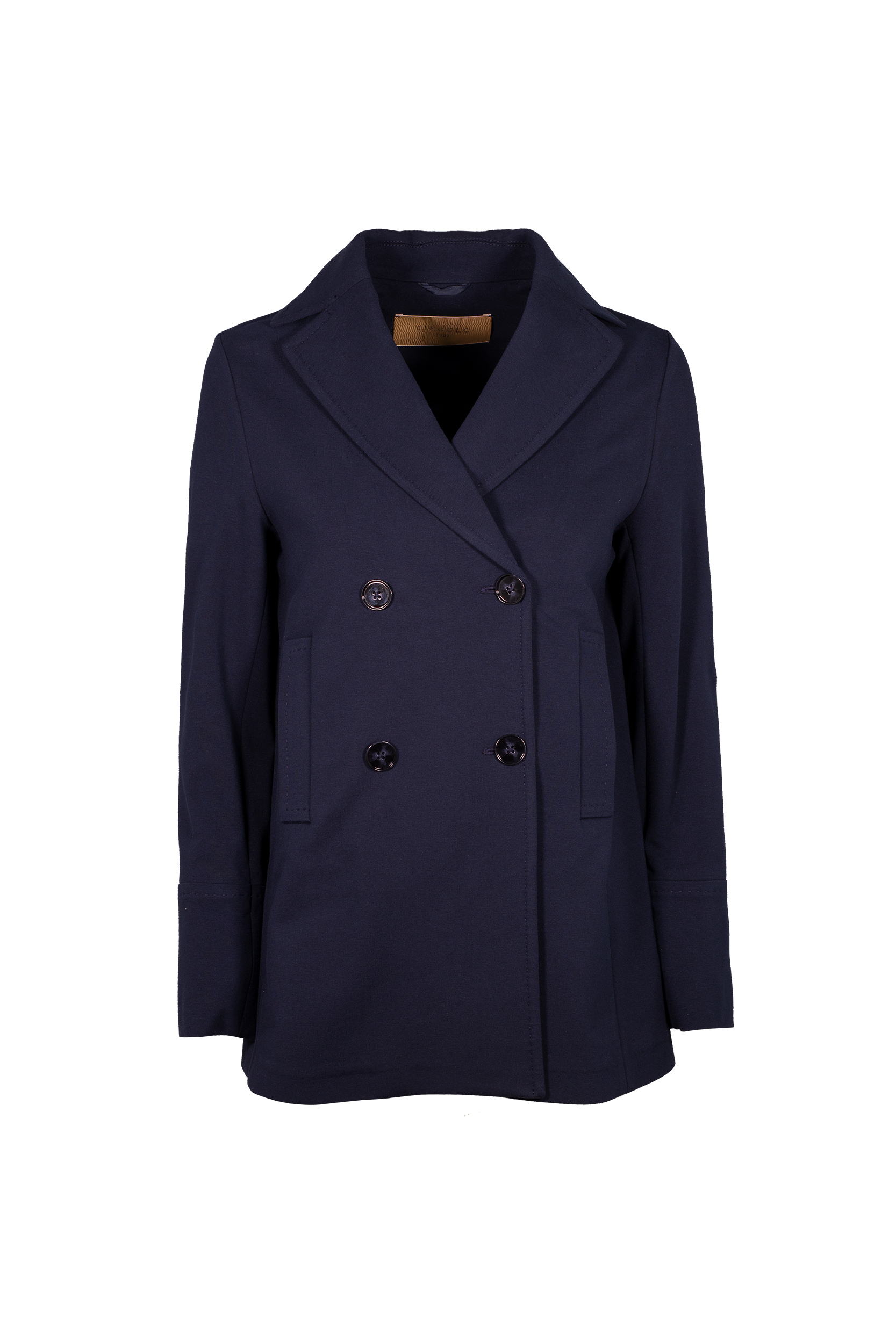Il Peacot in felpa CIRCOLO 1901, รจ una giacca doppio petto in felpa tinto light, revers a lancia, chiusura quattro bottoni, tasche a filo laterali.