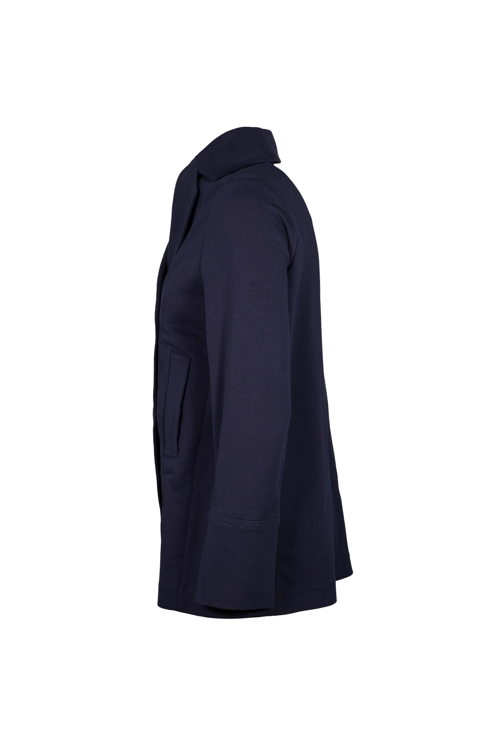 Peacot doppio petto in felpa tinto light Revers a lancia Chiusura quattro bottoni Tasche a filo laterali Composizione: 93% Cotone 7% Elastan Lavare a macchina 30ยฐC