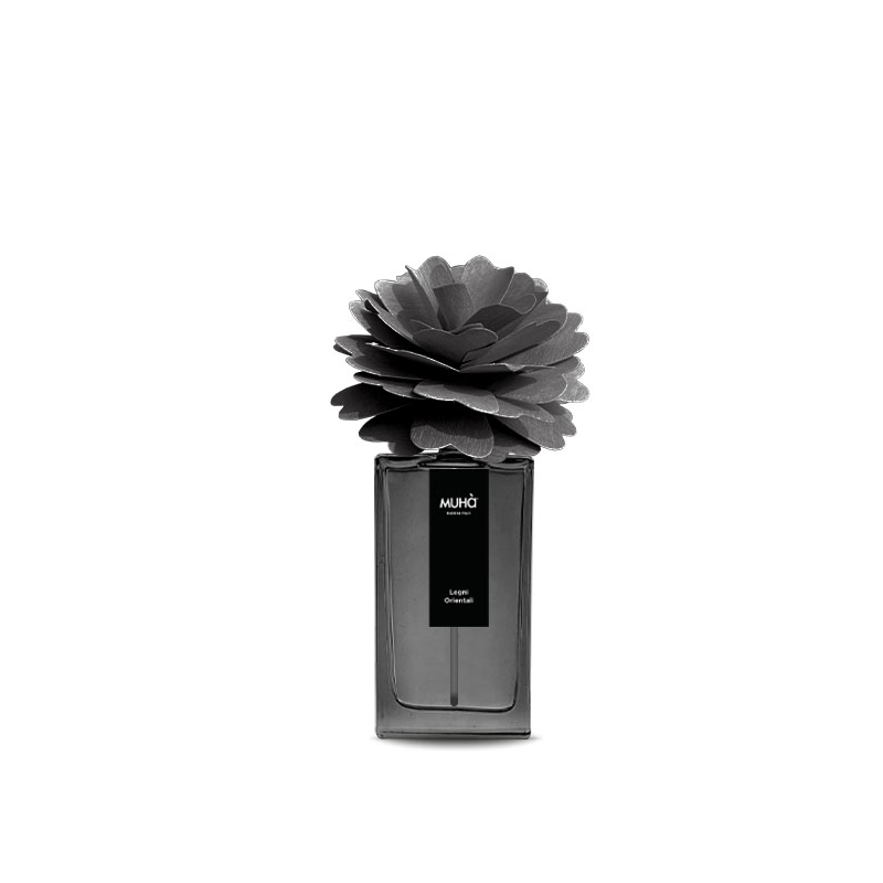 PEONY DIFFUSER Legni Orientali 100ml MUHA’: รจ un profumatore d’ambiente in bottiglia di vetro con diffusore a forma di ๏ฌore in legno di betulla realizzato a mano.