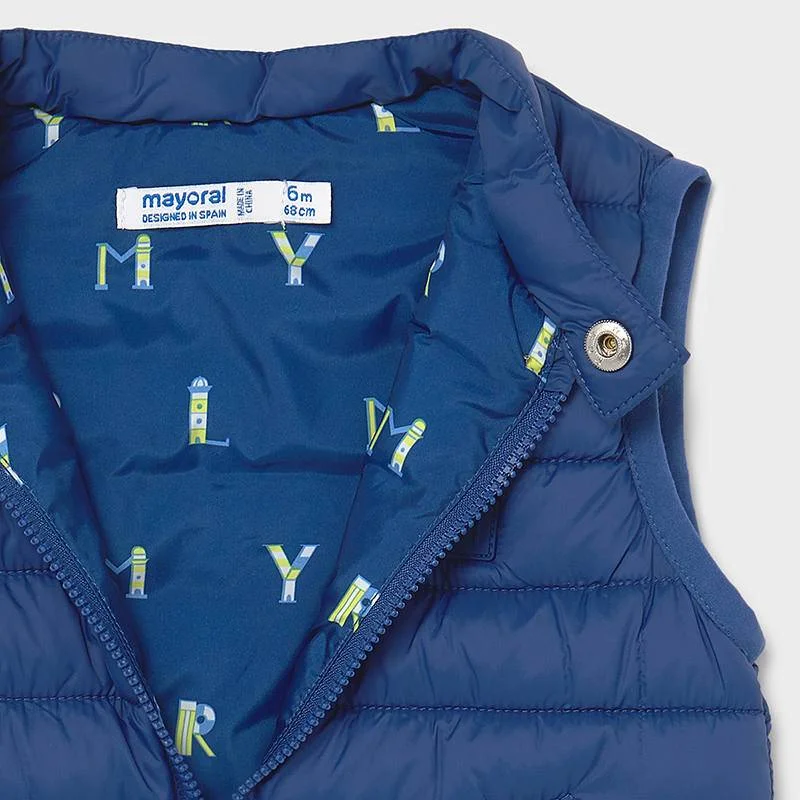 Anche nelle stagione estive quando le temperature sono piรน alte, prenditi cura del tuo piccolo e riparalo da quella freschezza contraddistingue l’estate. il piumino smanicato bluette Mayoral neonato, della nuova collezione, serve proprio a questo: riparare il tuo bambino dai venti piรน freschi. Il taglio smanicato serve per far indossare il capo anche d’estate in maniera tale da riparare il busto!