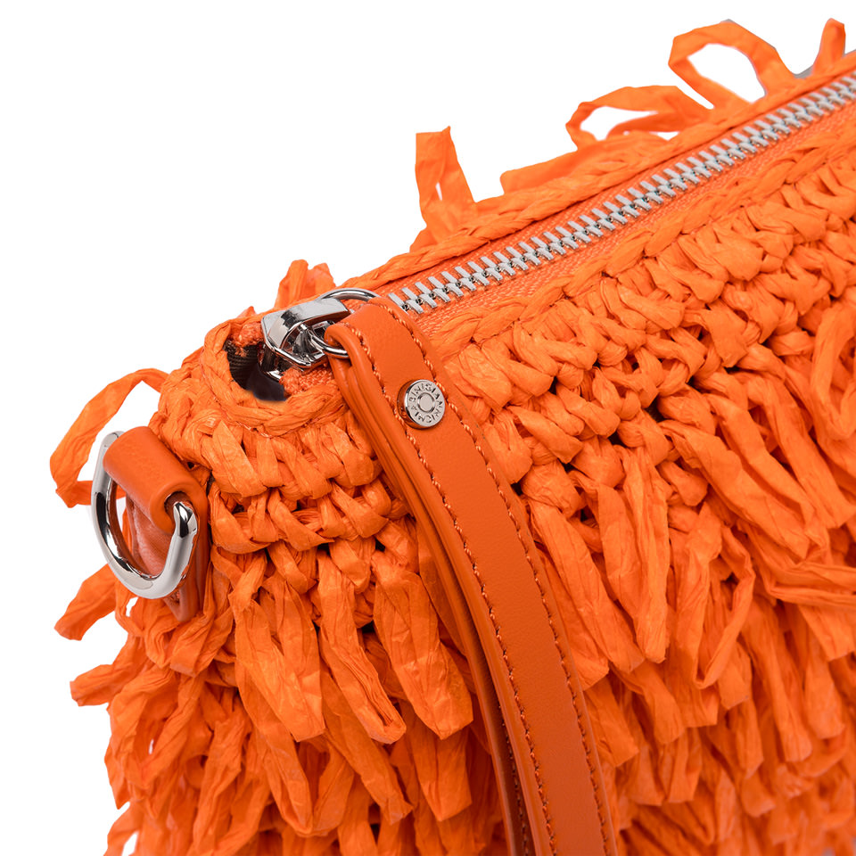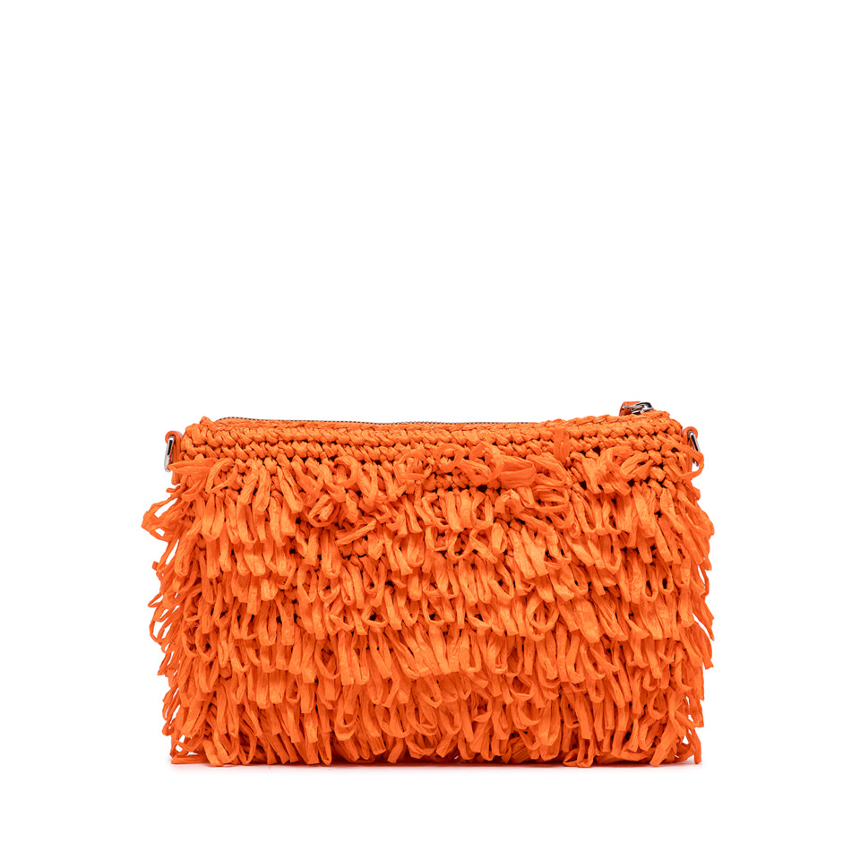 Pochette Marcella Tessuto materico, formato da tanti riccioli di rafia, intrecciati a mano all’uncinetto Tracolla in pelle Dimensioni: 29x19x1,5 cm Composizione: 100% Rafia Rifiniture: 100% Pelle