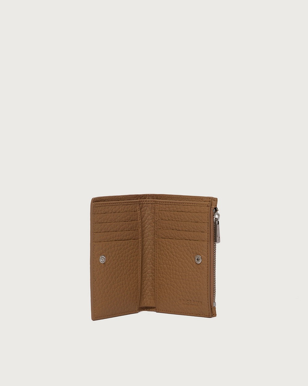 Dimensioni: Larghezza: 12,5 cm / Altezza: 9 cm / Profonditร : 1 cm Tasche: due scomparti per banconote, 8 scomparti porta carte, porta monete con zip Chiusura: bottone a pressione Funzionalitร : protezione RFID anti-frode Dettagli: pelle martellata, finitura palladio Made in Italy