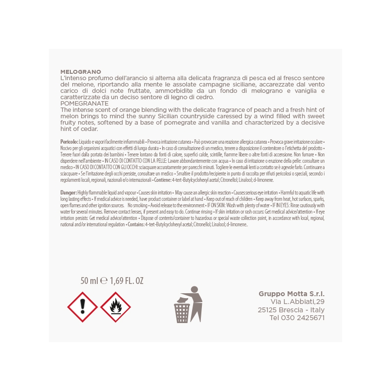 - MELOGRANO Lโintenso profumo dellโarancio si alterna alla delicata fragranza di pesca ed al fresco sentore del melone, riportando alla mente le assolate campagne siciliane, accarezzate dal vento carico di dolci note fruttate, ammorbidite da un fondo di cocco e vaniglia e caratterizzate da un deciso sentore di legno di cedro.