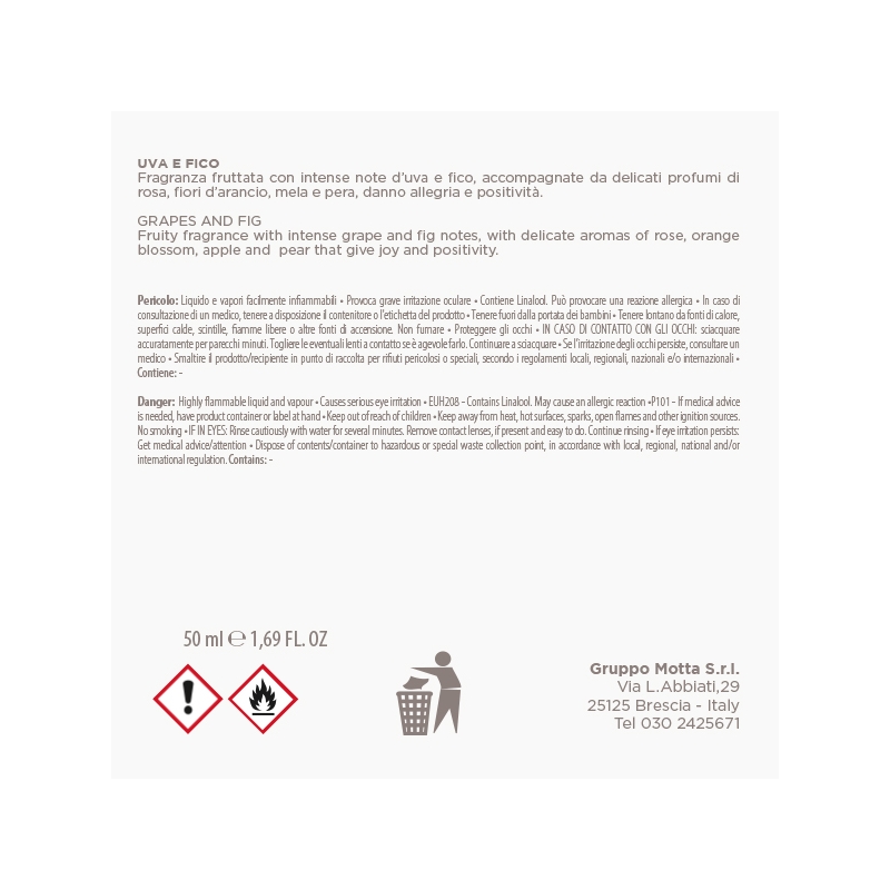 • UVA E FICO Fragranza fruttata con intense note dโ€™uva e fico, accompagnate da delicati profumi di rosa, fiori dโ€™arancio, mela e pera, danno allegria e positivitร .
