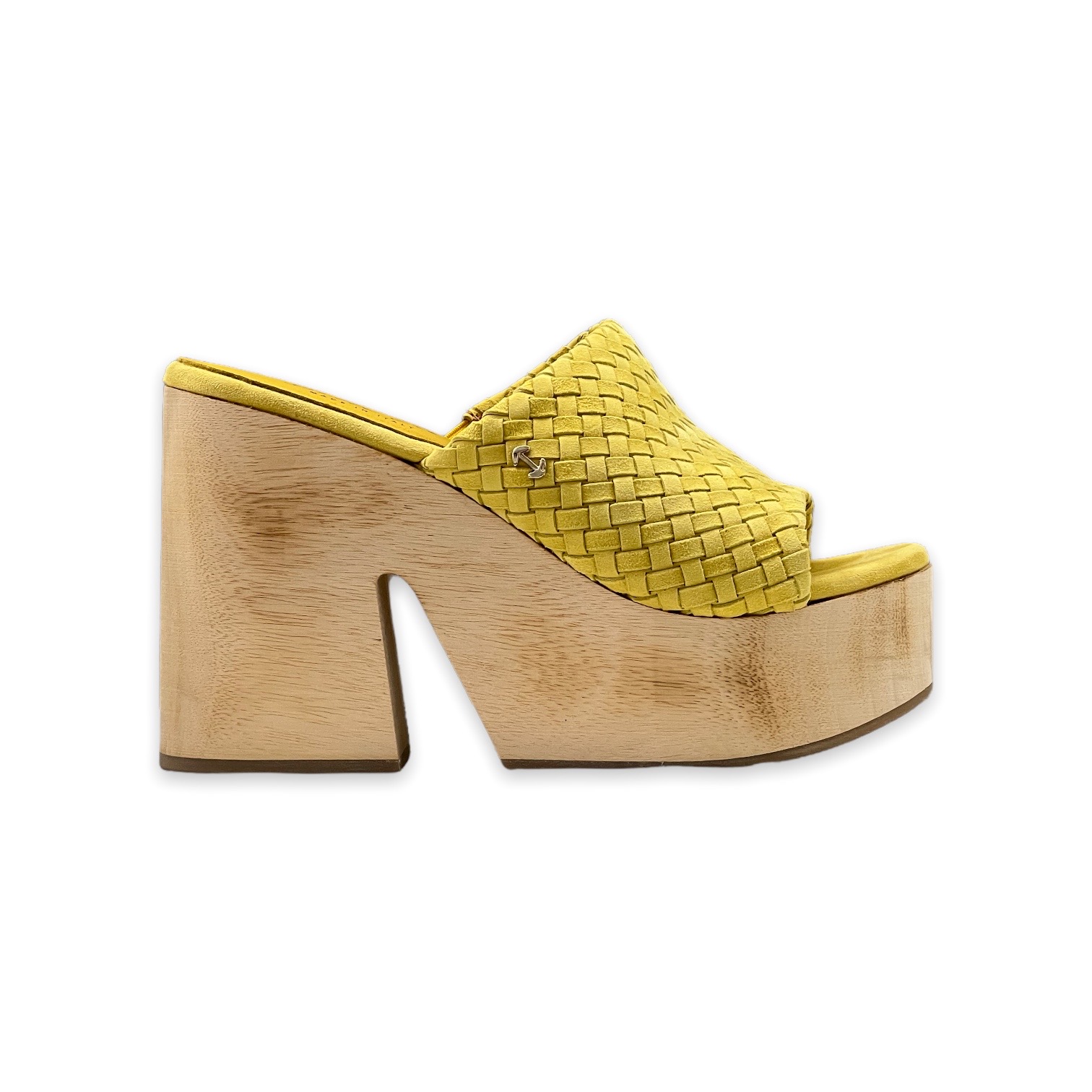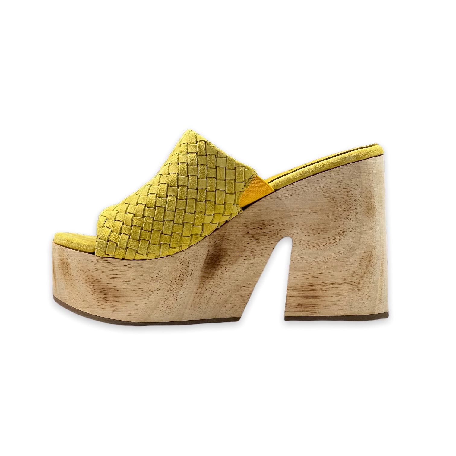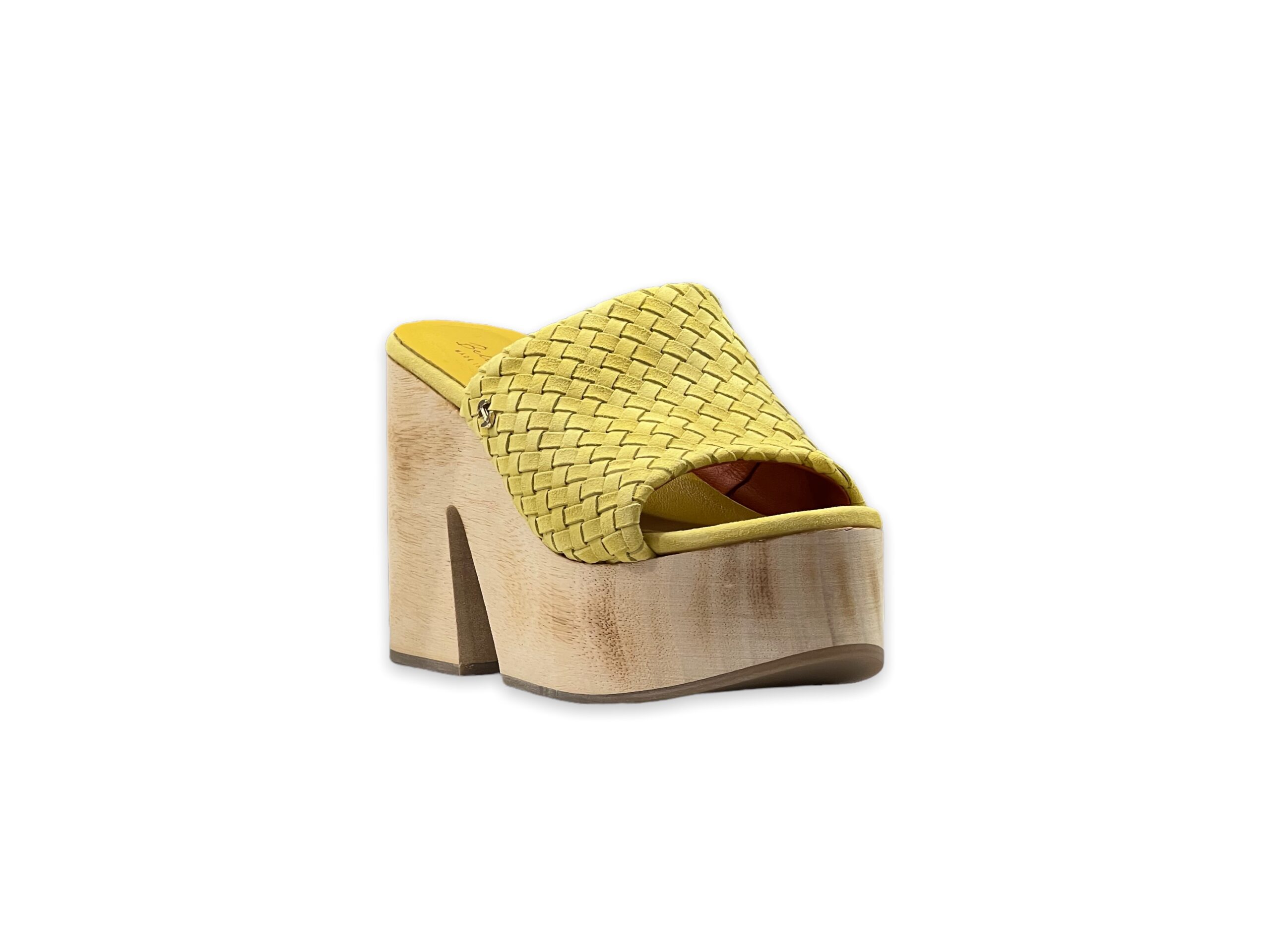 Il sandalo Via Tacca BELLE VIE, รจ un sandalo in camoscio intrecciato, punta tonda, tacco a zeppa in legno, interno in pelle, suola in gomma con incisioni, contiene parti non tessili di origine animale.