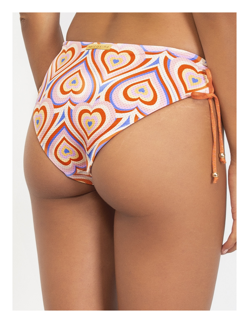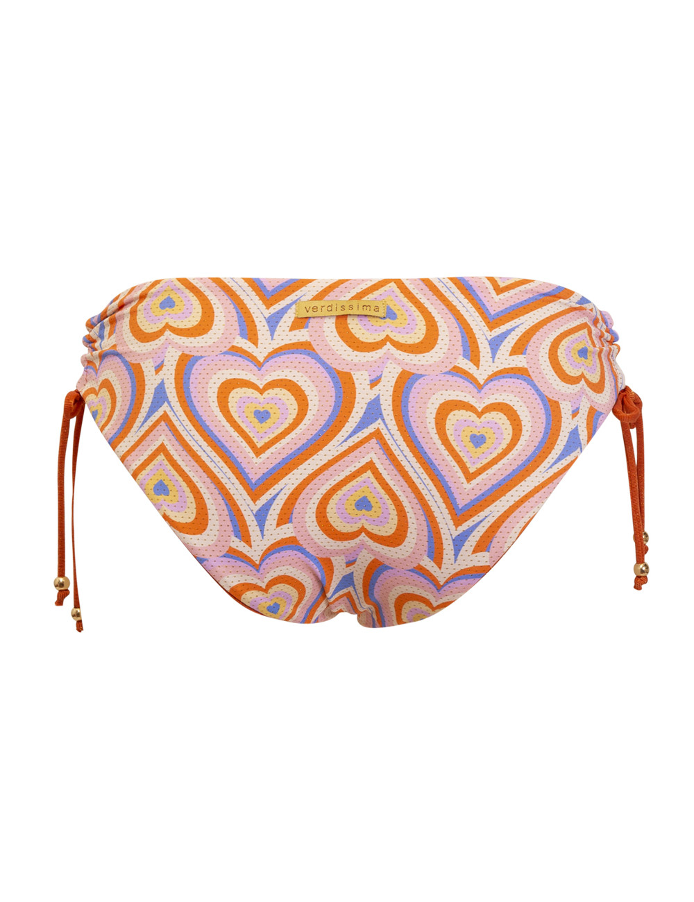 Lo Slip coulisse cuore optical VERDISSIMA, รจ uno slip bikini regolabile con coulisse sul fianco, double face stampa cuore/ tinta unita.