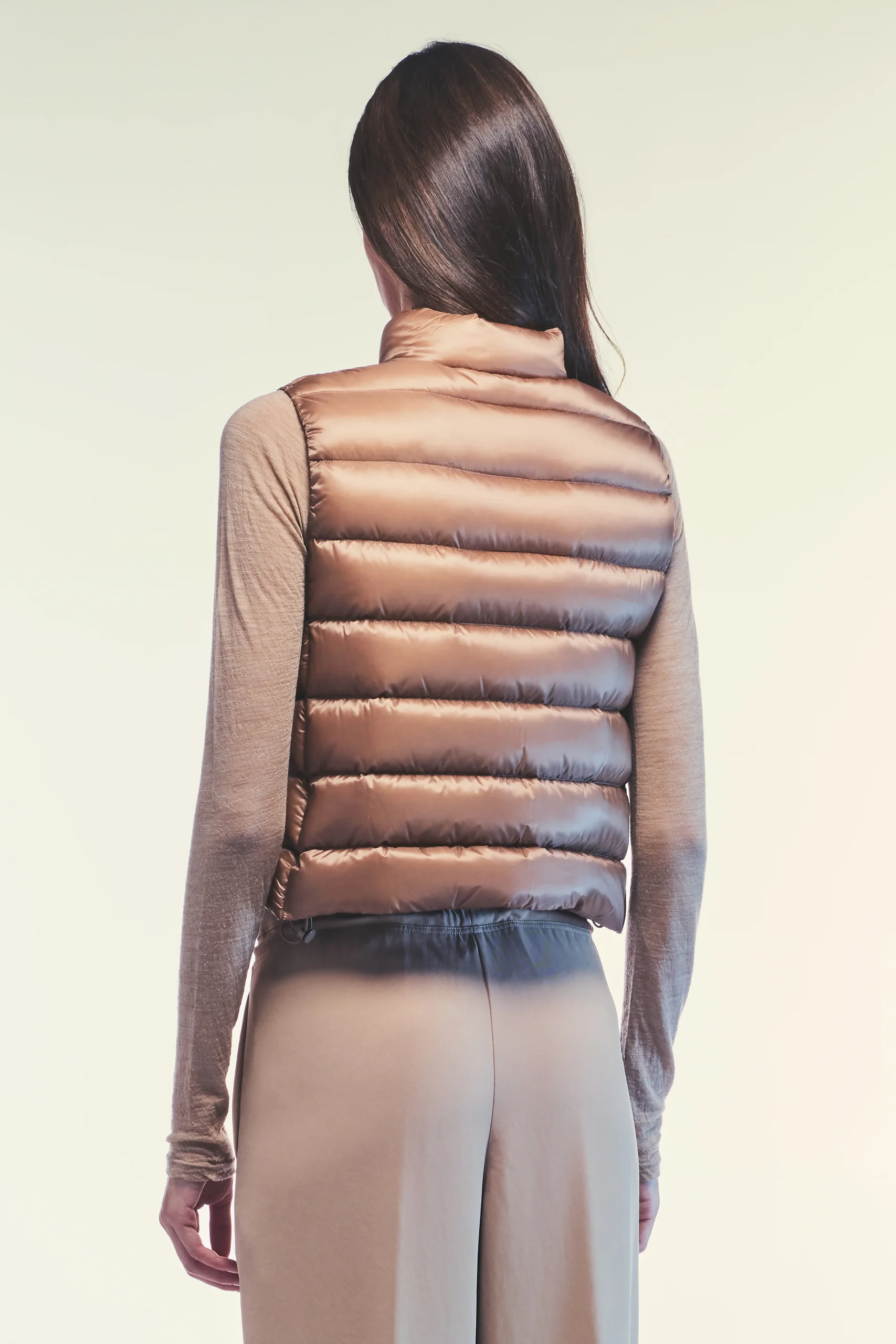 Lo Smanicato Pierre LIVIANA CONTI, รจ un piumino corto smanicato con chiusura a zip centrale, tasche laterali con chiusura a zip, collo alto, coulisse laterali per una migliore vestibiltร .