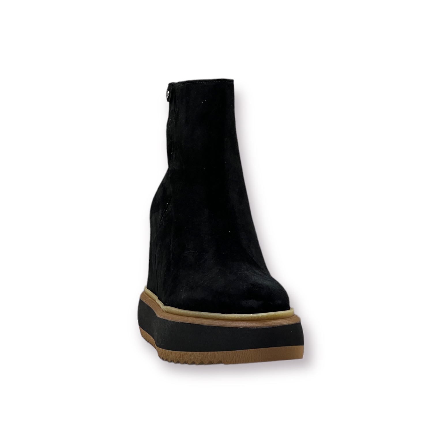 classico stivaletto Belle Vie realizzato artigianalmente in morbido camoscio idrorepellente zeppa interna di 7 cm suola in gomma di 4 cm guardolo in cuoio zip per una calzata piรน comoda Tomaia 100% pelle Suola 100% gomma Made in Italy