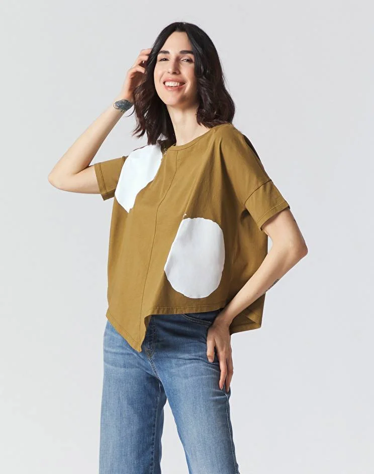 Su Charme Roma puoi trovare la t-shirt a pois Manila Grace. Una t-shirt 100 % cotone con pois grandi e maniche corte. Un capo semplice ed essenziale.