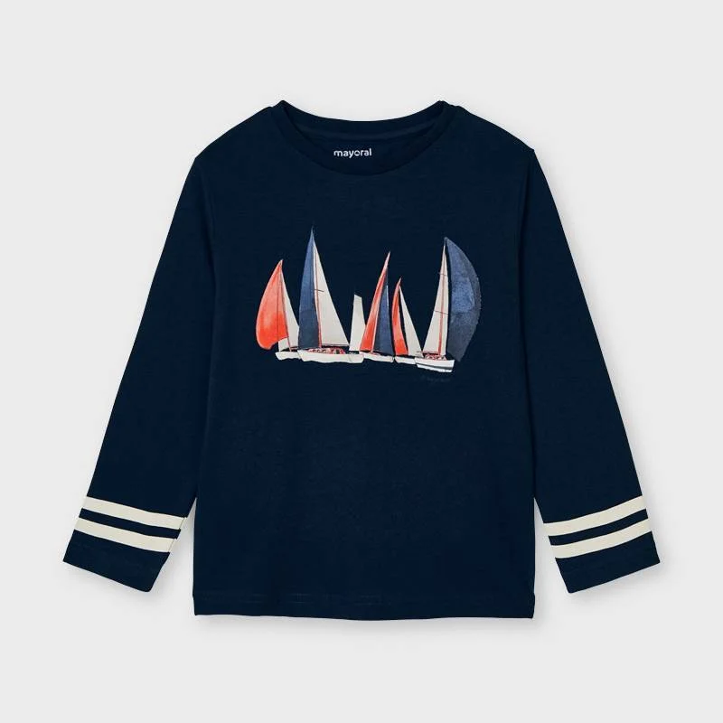 T-shirt manica lunga bimbo realizzata in morbido cotone elasticizzato con stampe di vele.