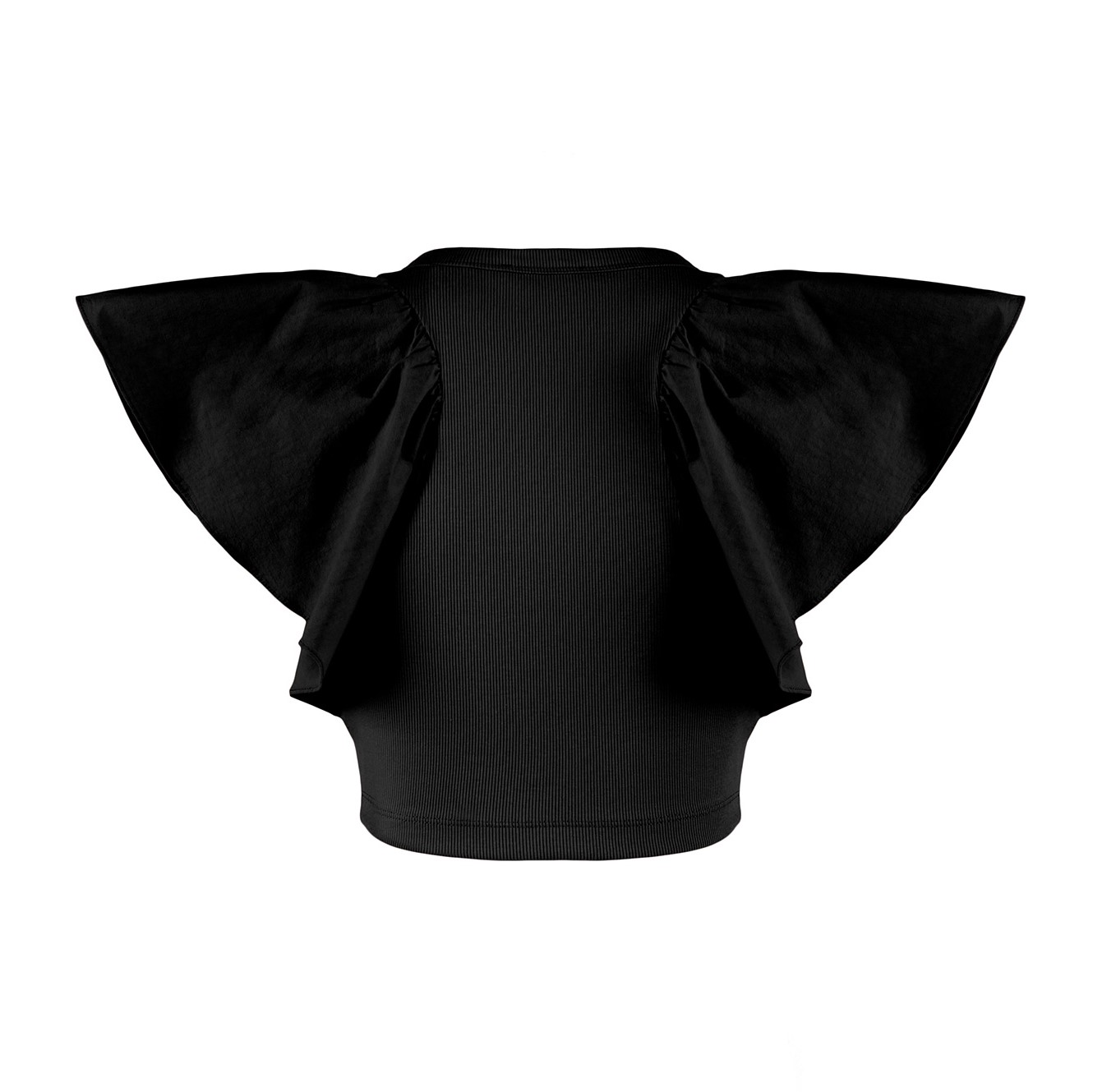 La T-shirt Discoteque NENETTE, รจ una t-shirt corta in cotone elasticizzato, a costina con maniche volant.