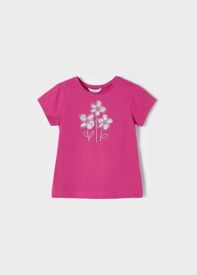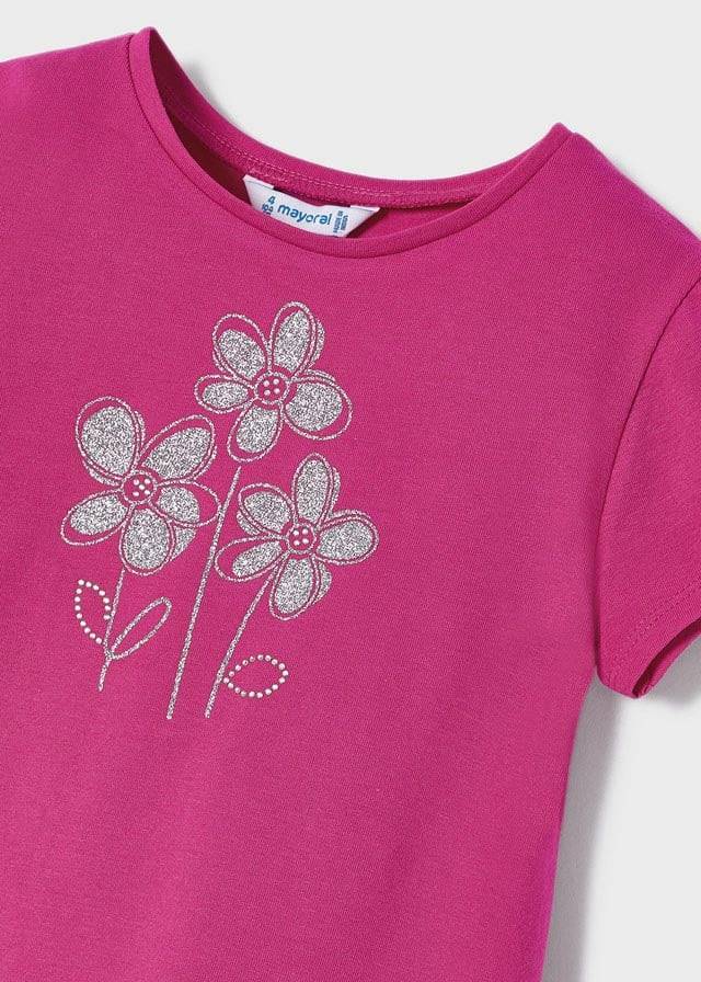 T-SHIRT MAYORAL BIMBA FUCSIA CON FIORI ARGENTO