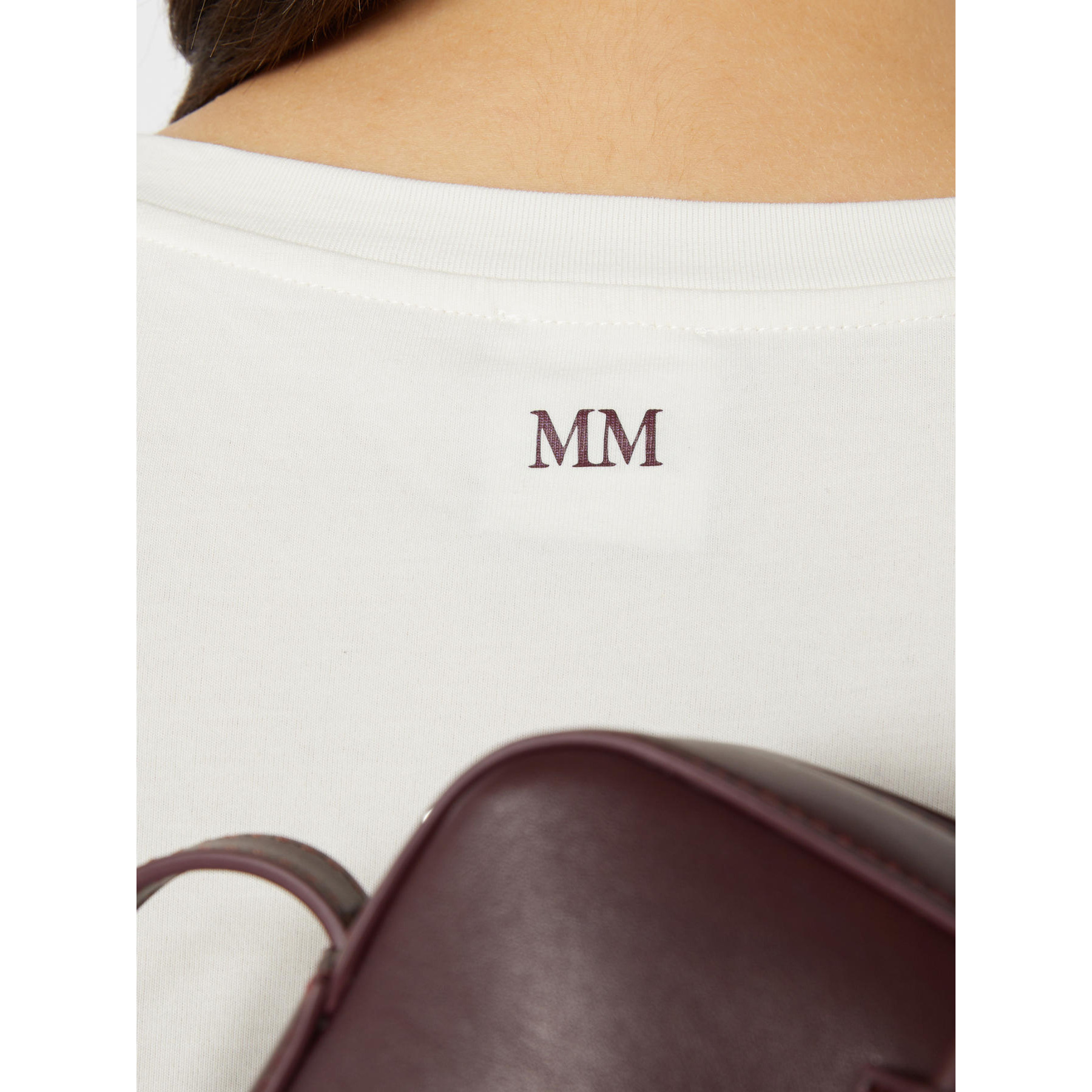 La T-shirt Mulino MAX MARA, รจ una t-shirt manica corta dalla linea dritta realizzata in jersey di cotone stretch organico con giro collo normale. Presenta transfer logo MM al centro dietro sotto lo scollo.