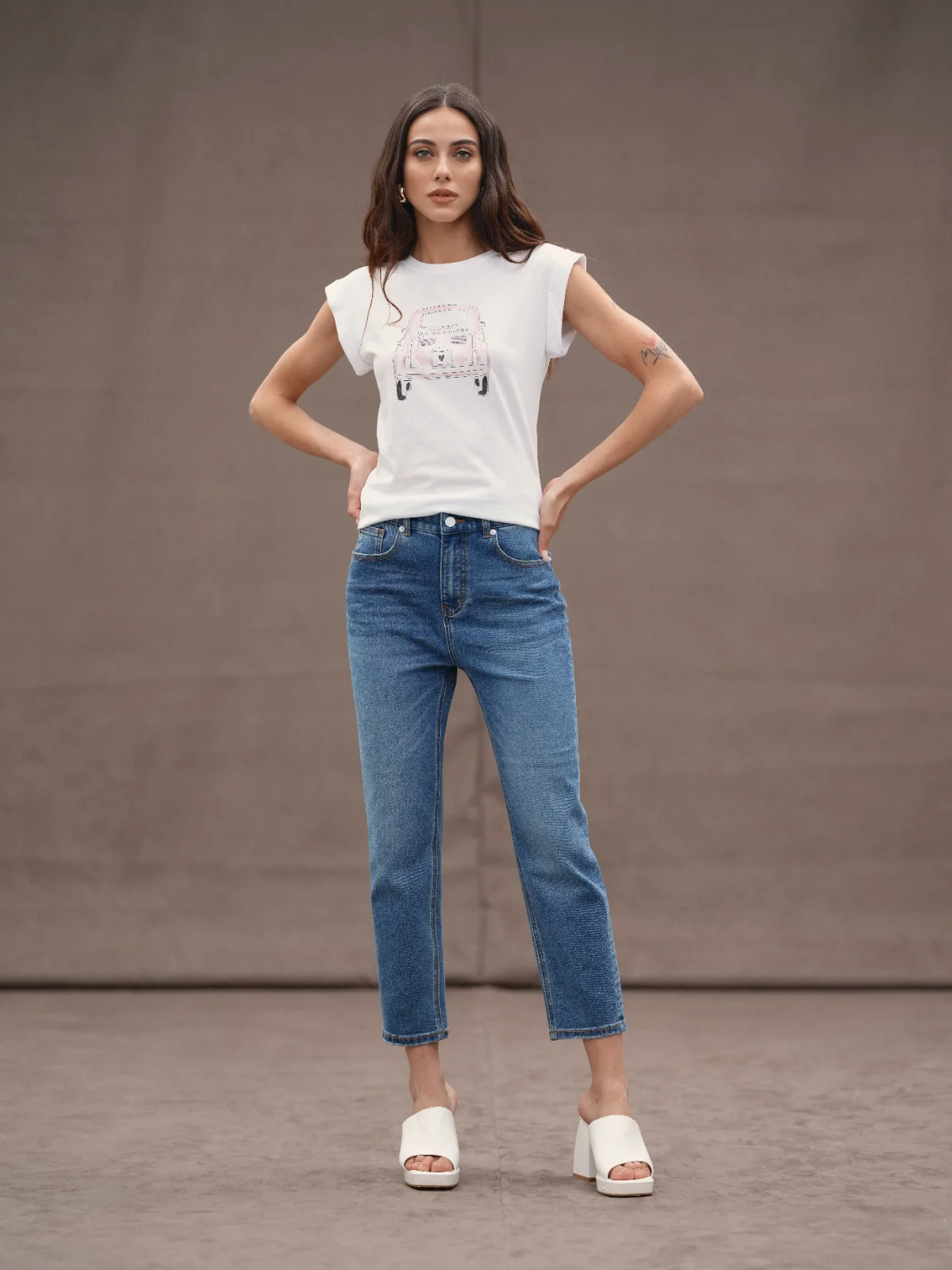 Una t-shirt bianca con stampa, morbida e comoda anche e soprattutto nelle giornate piรน calde.
