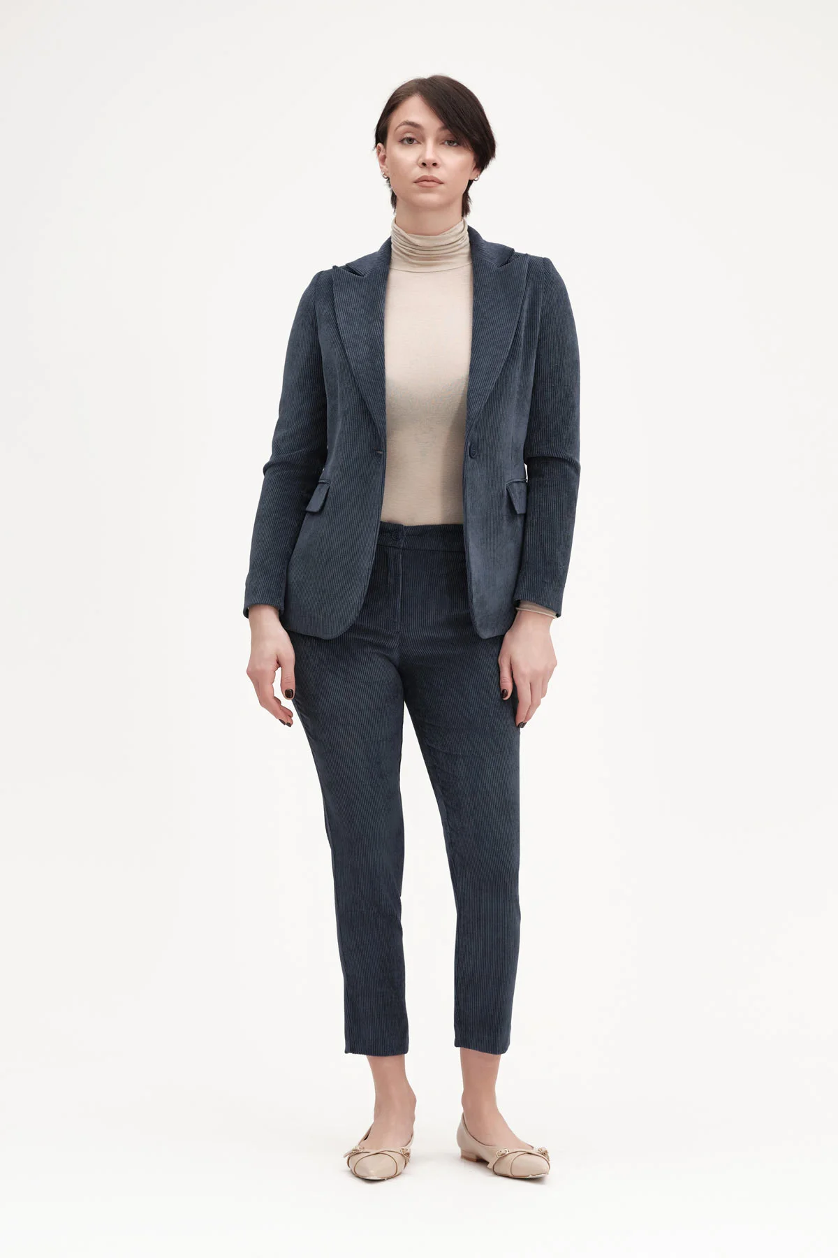 Il tailleur White Wise a coste di velluto รจ la scelta ideale per chi desidera un look raffinato, contemporaneo e capace di distinguersi con stile. Realizzato in un velluto a coste morbido e strutturato, questo completo interpreta alla perfezione unโeleganza moderna con richiami vintage, combinando comfort e personalitร in ogni dettaglio.