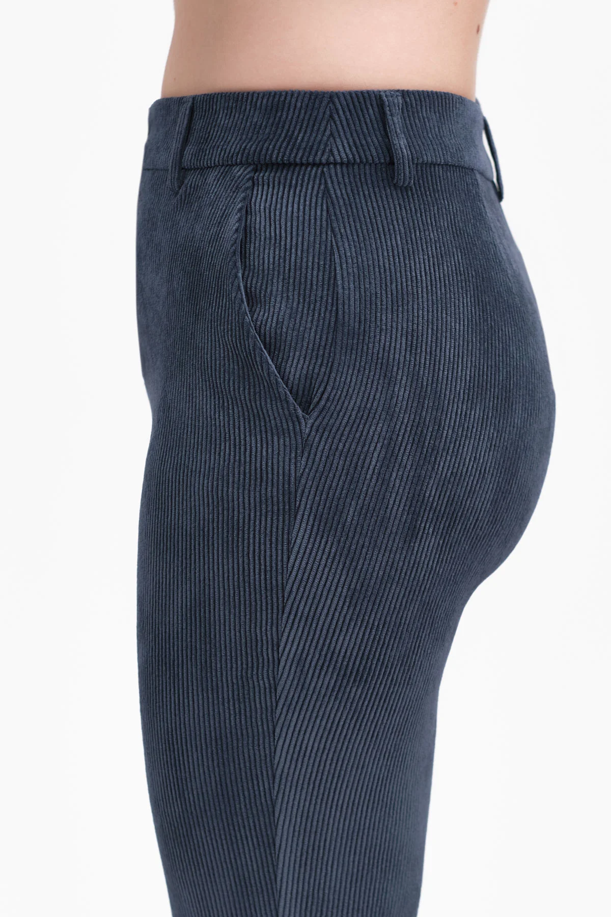 Il tessuto in velluto a coste aggiunge profonditร e luce al capo, creando un effetto visivo elegante che si distingue senza risultare eccessivo.