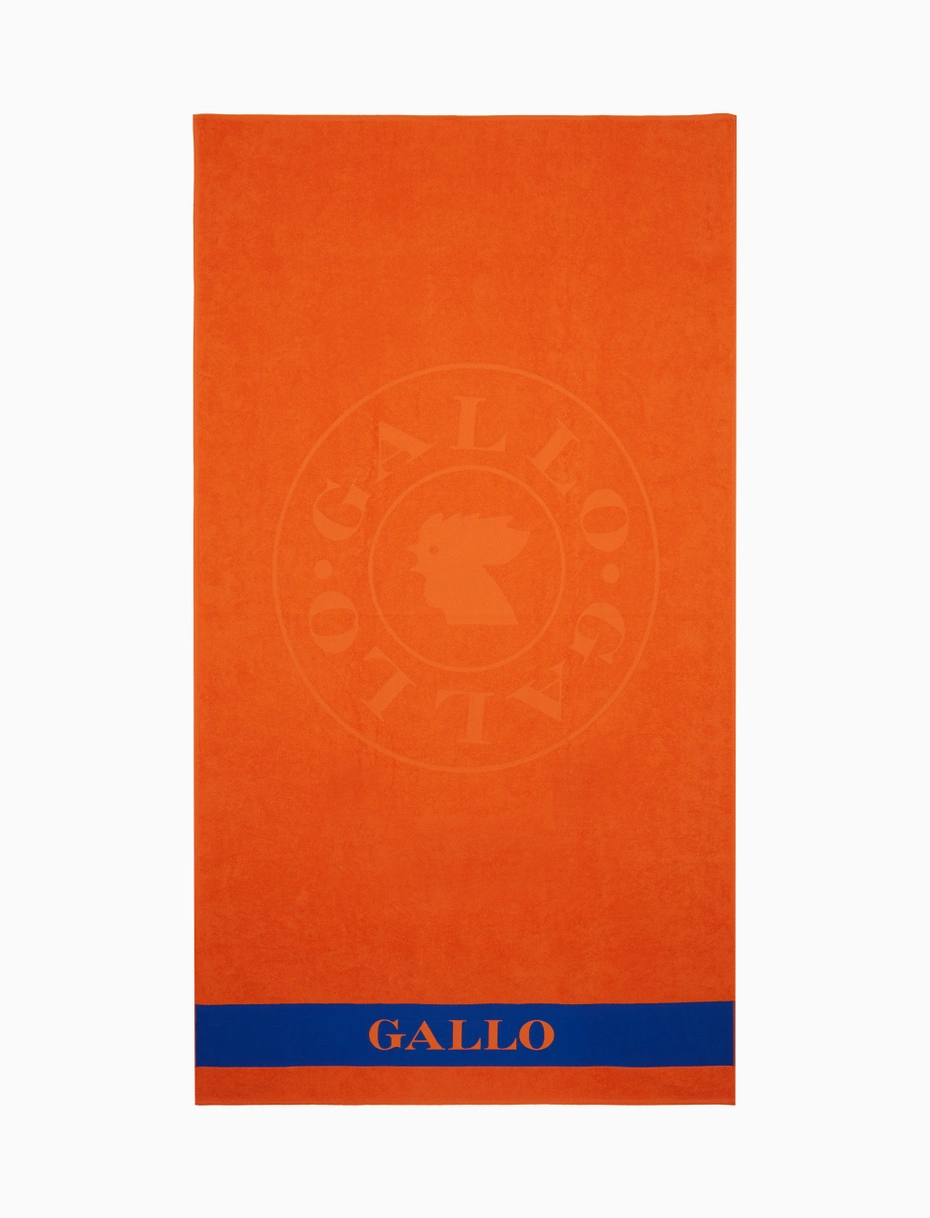 Telo mare Gallo unisex fatto a mano in Italia in morbida spugna di cotone. Tinta unita nei toni dell’arancio. Linee classiche fedeli alla tradizione. Bordo inferiore a contrasto con maxi logo Gallo. Per rendere coloratissime le giornate estive.