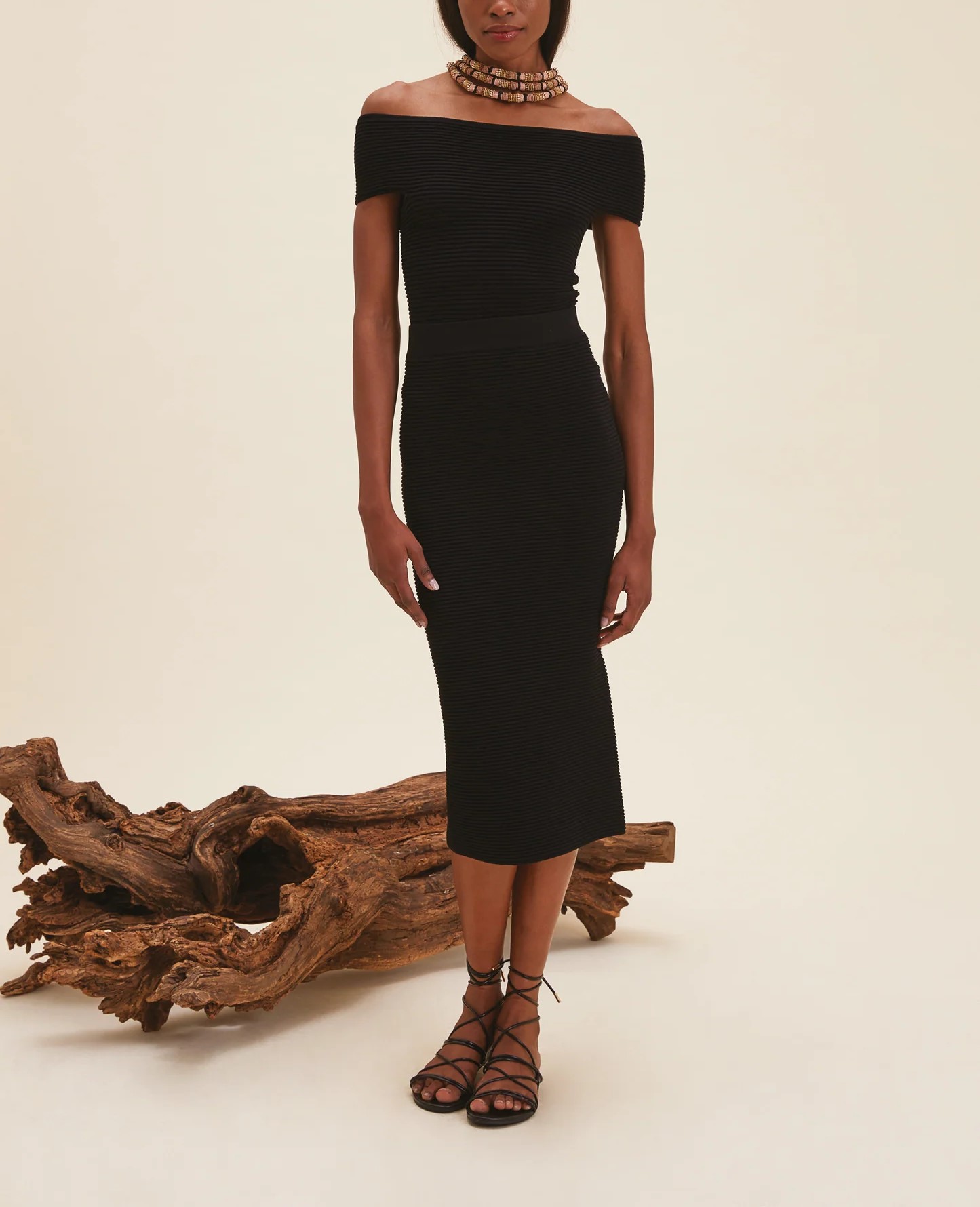 Top in maglia off shoulder Completo con la gonna WONKA della collezione. Composizione: 75% Viscosa 25% Poliestere