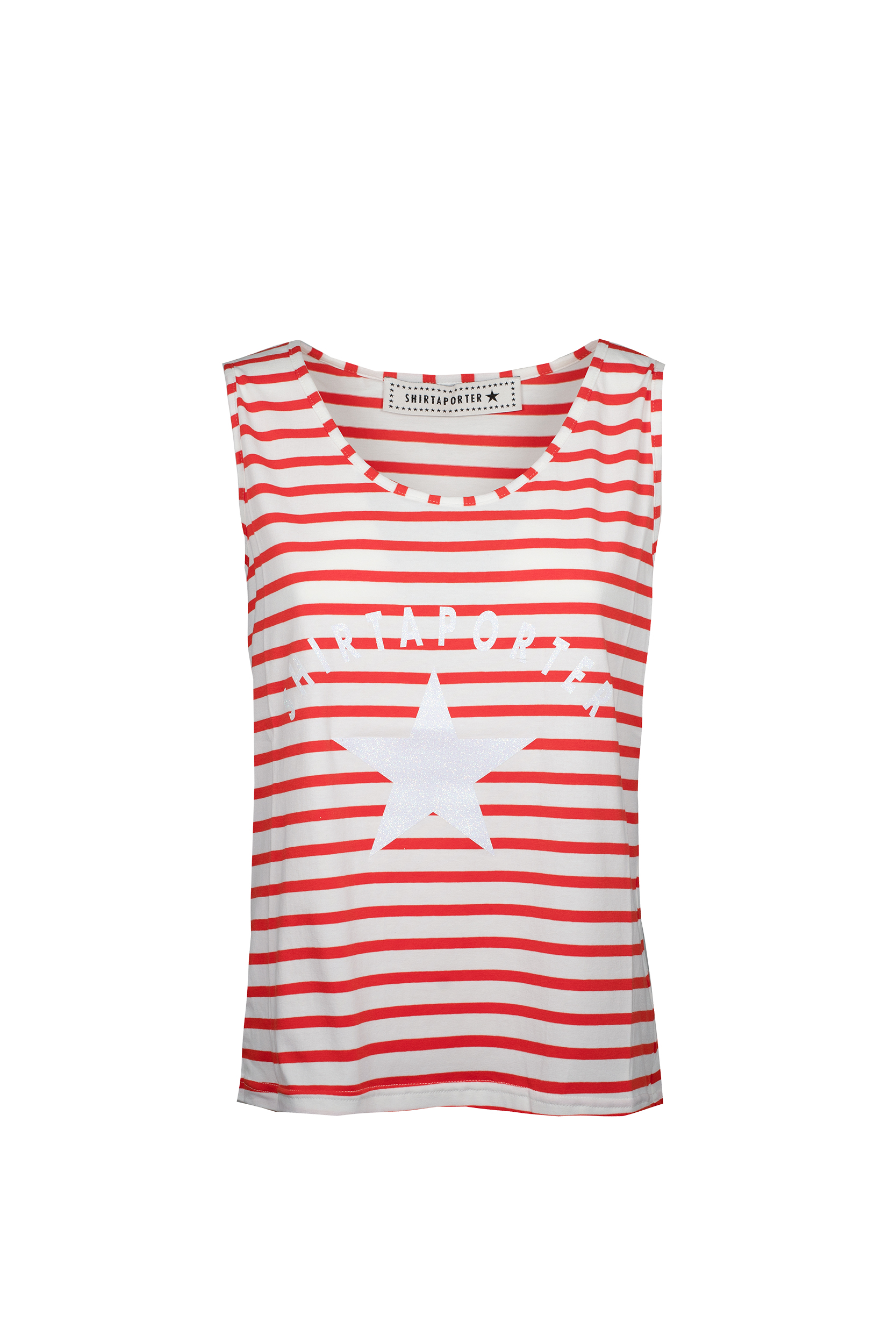 Il Top righe logo SHIRTAPORTER, รจ un top a righe over con logo glitterato.