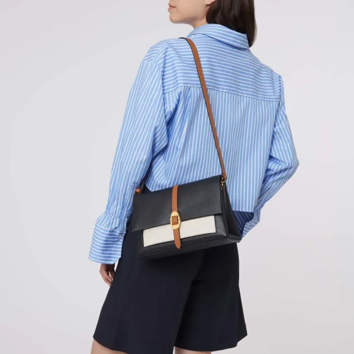 Uno degli elementi distintivi della Dorian è la chiusura con una fibbia dorata, che non solo aggiunge un dettaglio lussuoso ma garantisce anche una maggiore sicurezza. La tracolla regolabile permette di indossare la borsa in vari modi, a spalla o a tracolla, adattandosi alle esigenze di chi la porta. All’interno, la borsa è ben organizzata con scomparti che facilitano l’ordine e l’accessibilità degli oggetti, rendendola perfetta per l’uso quotidiano. Nonostante le sue dimensioni compatte, offre abbastanza spazio per contenere oggetti essenziali come portafoglio, cellulare e piccoli accessori.