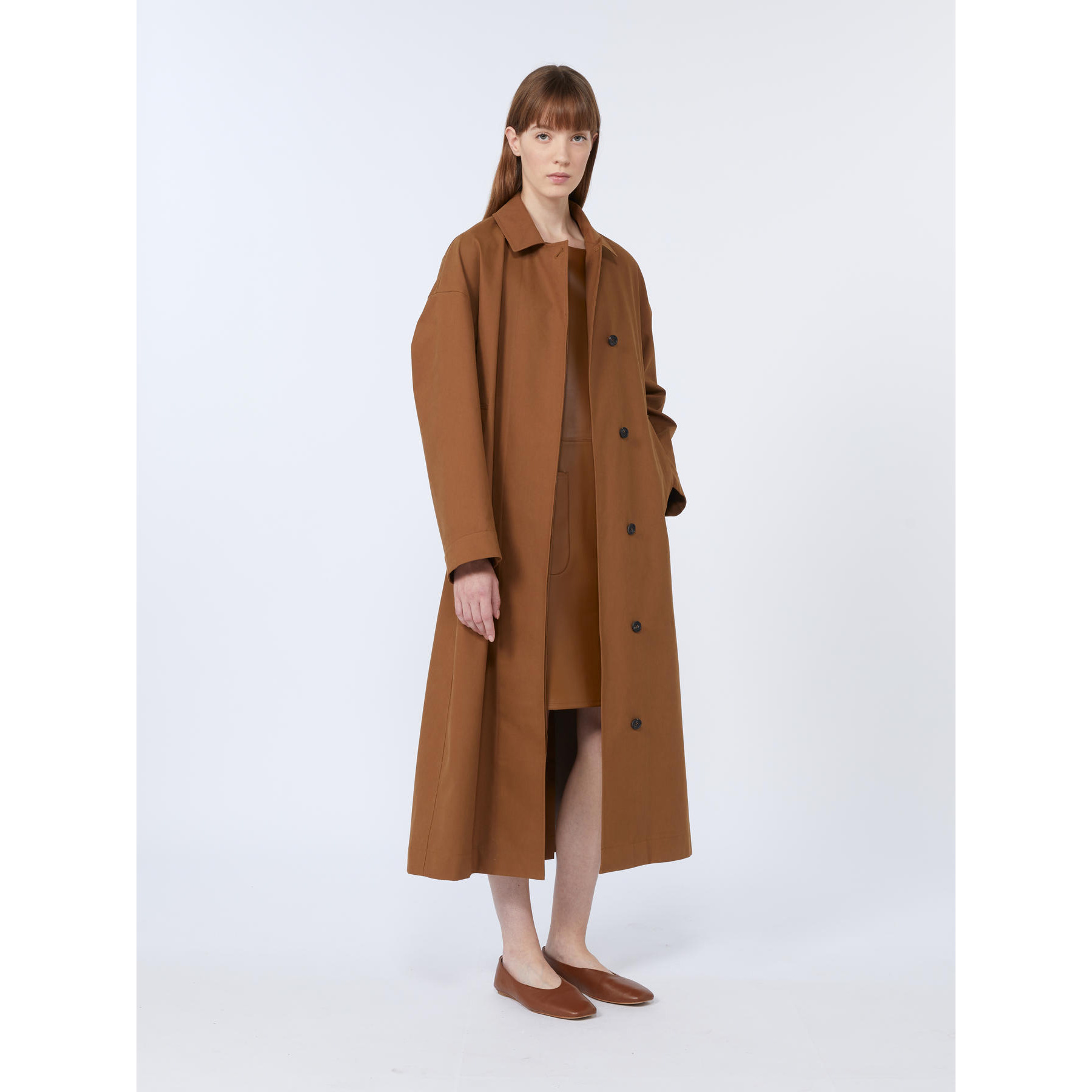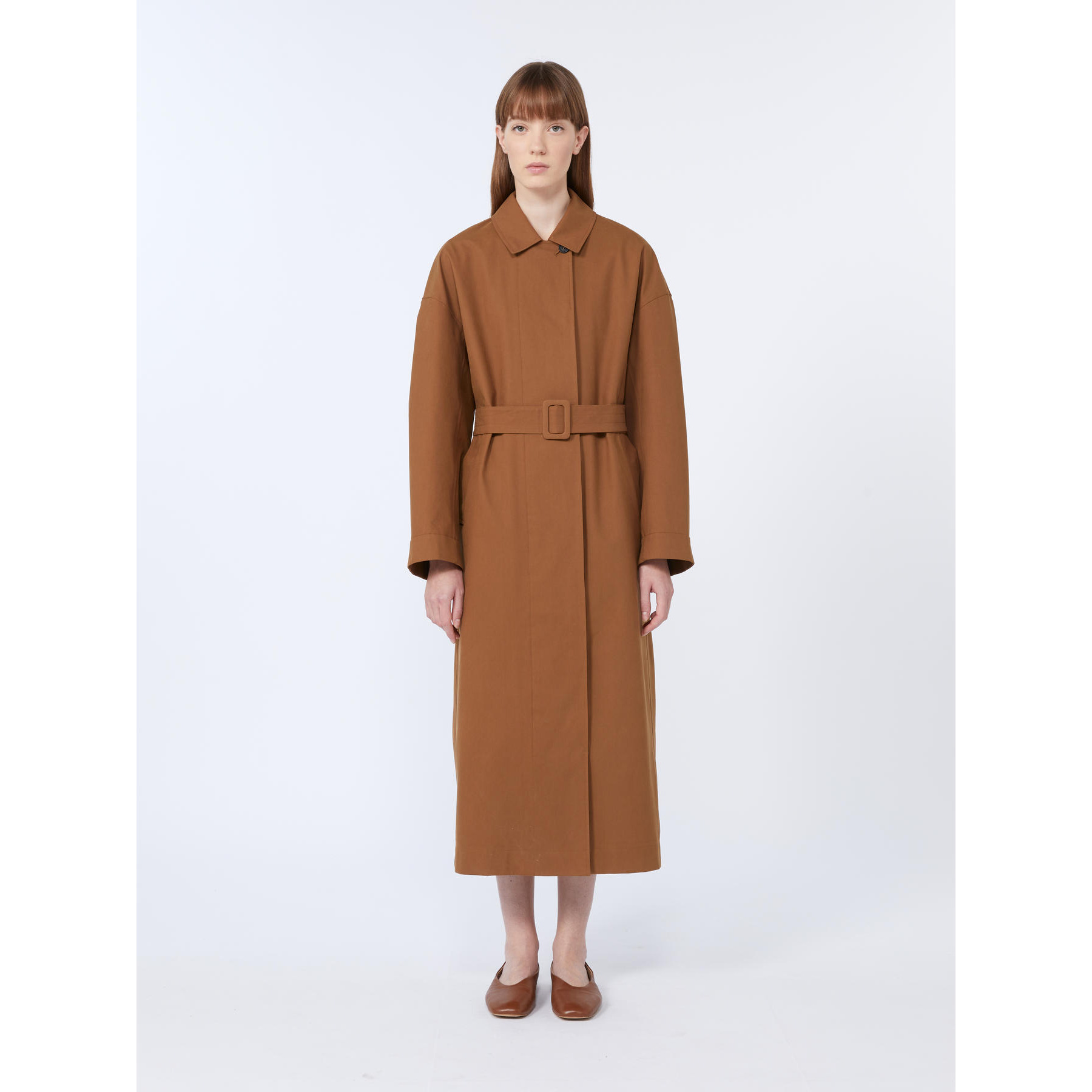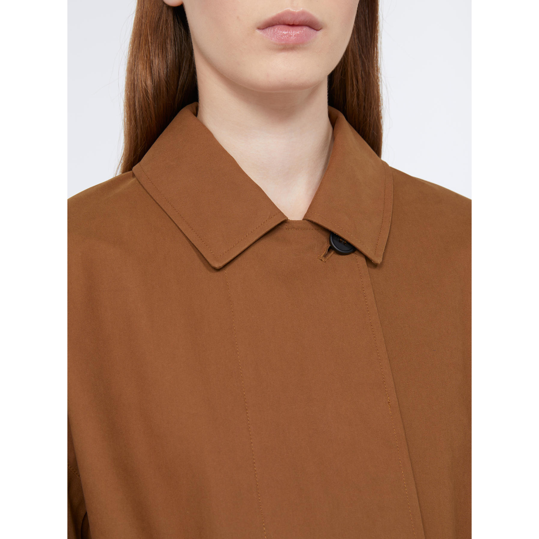 Il Trench Alibi MAX MARA, รจ un trench doppiopetto in gabardina di cotone antigoccia e antivento. Collo a camicia, maniche lunghe, tasche a filettone, bavolet sul retro, cintura in vita. Chiusura nascosta con bottoni in corno, di cui il primo visibile.