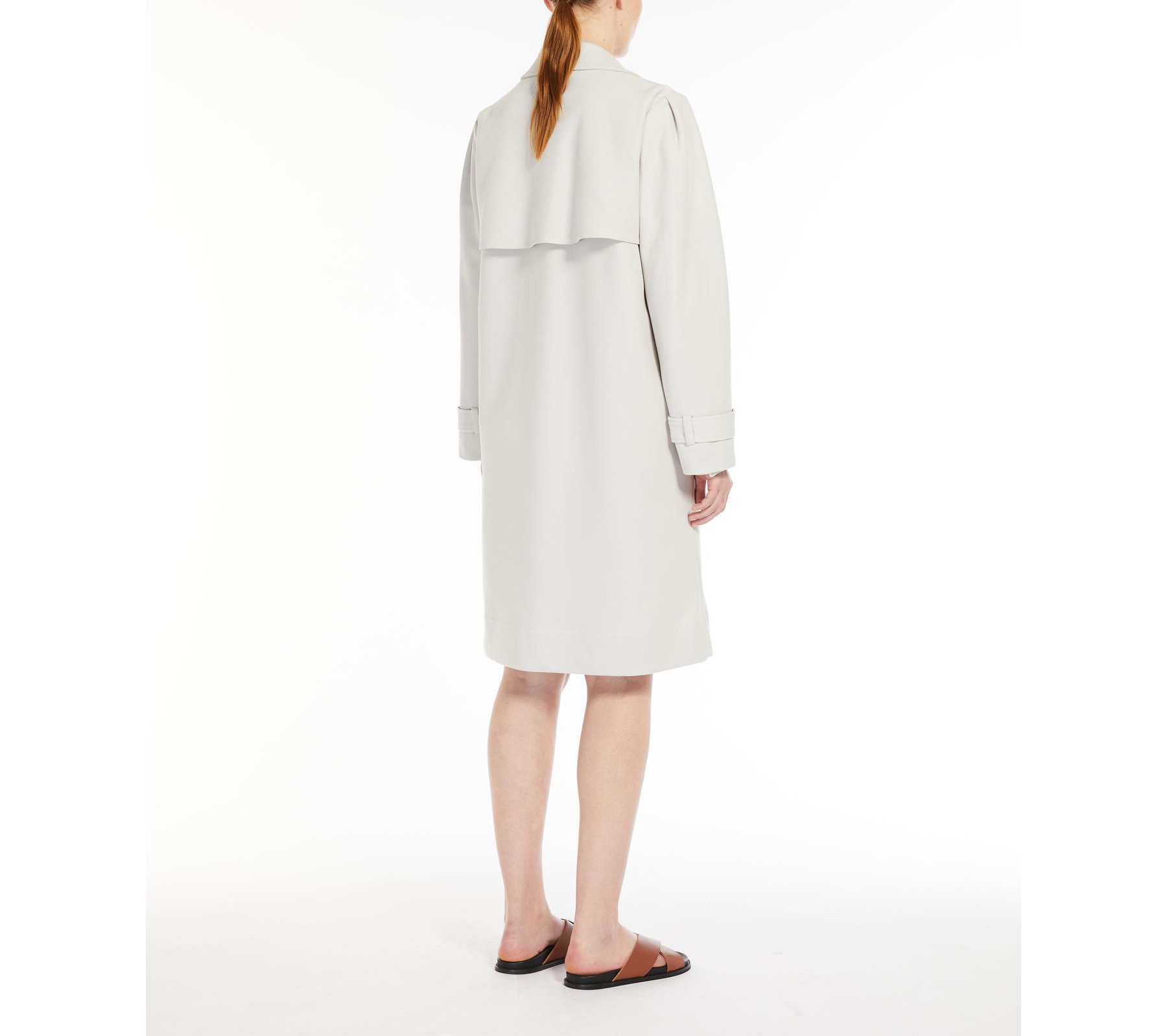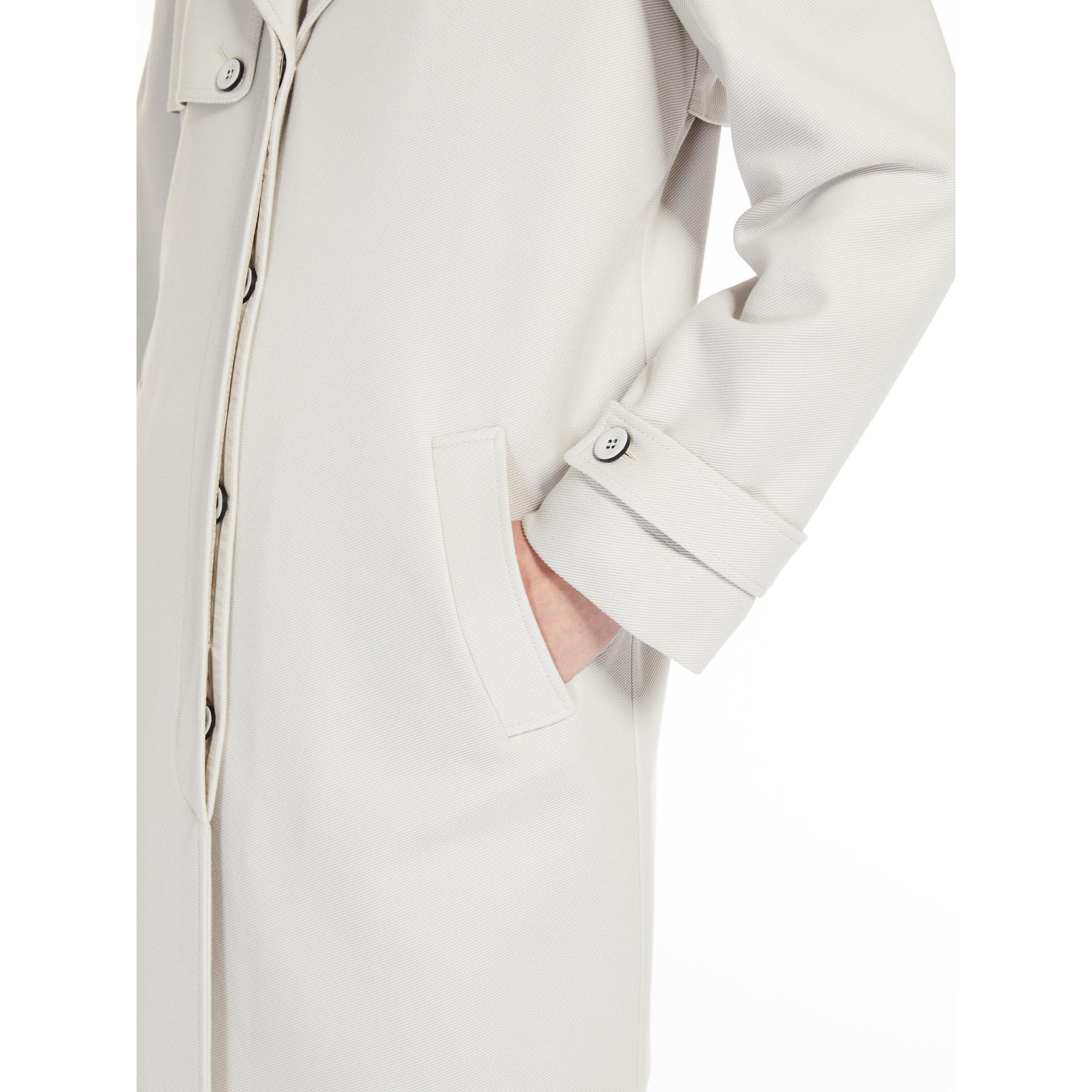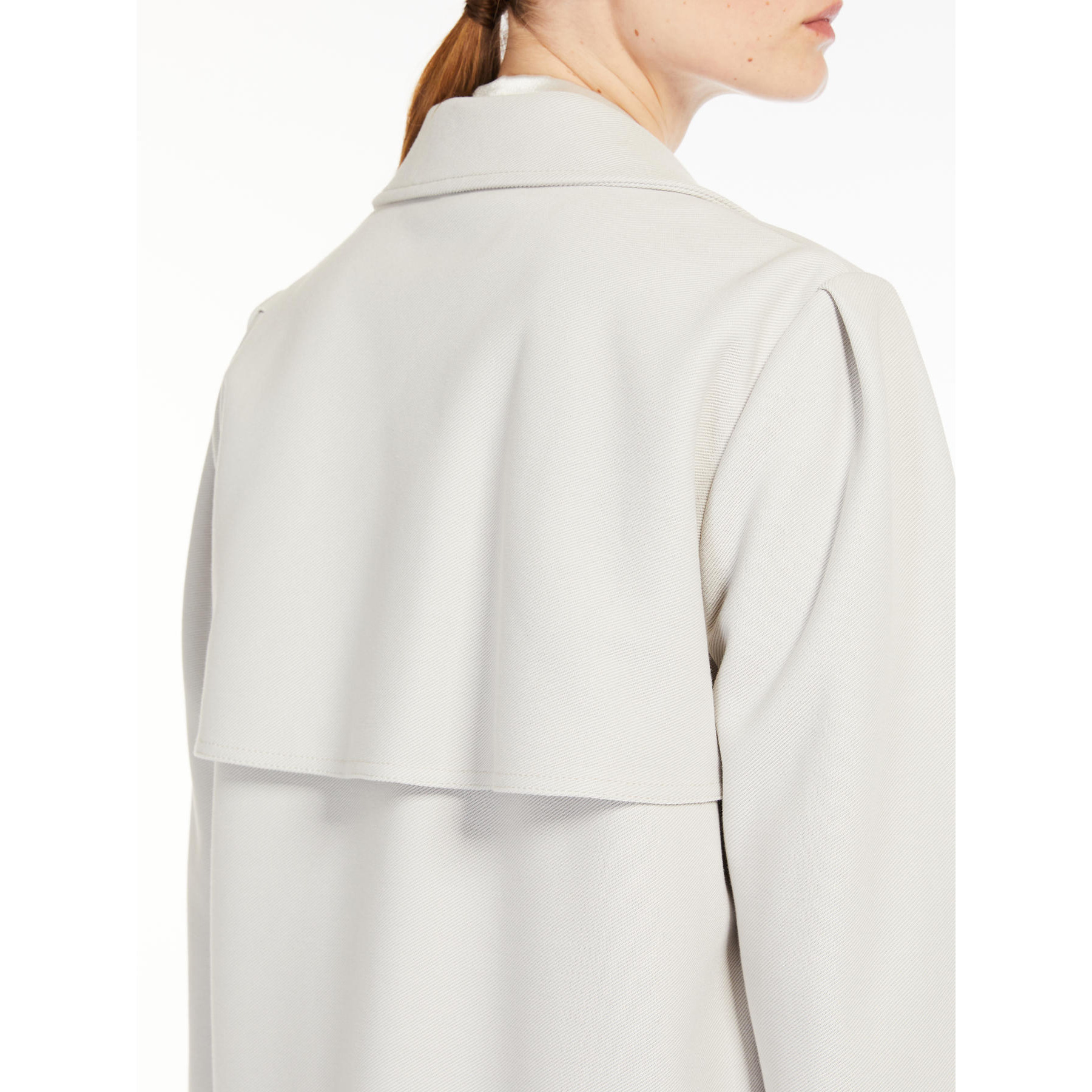 Il Trench Zelota MAX MARA Leisure, รจ un trench in jersey pesante dalla texture armaturata, caratterizzato da una silhouette dritta e dettagli d’ispirazione classica. Il modello presenta collo a rever, tasche con patta sui fianchi, bavolet sul davanti e mantellina sul retro. Le maniche sono rifinite con doppia piega sulla testa e alamari sui polsi. Semifoderato nelle maniche e sprone interno. Chiusura frontale nascosta. Lunghezza 100 cm.