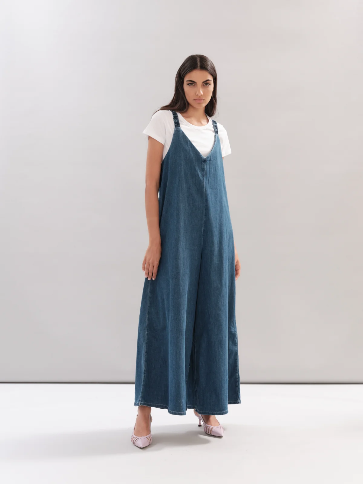 TUTA JEANS WHITE WISE AMPIA CON BRETELLE ELASTICHE