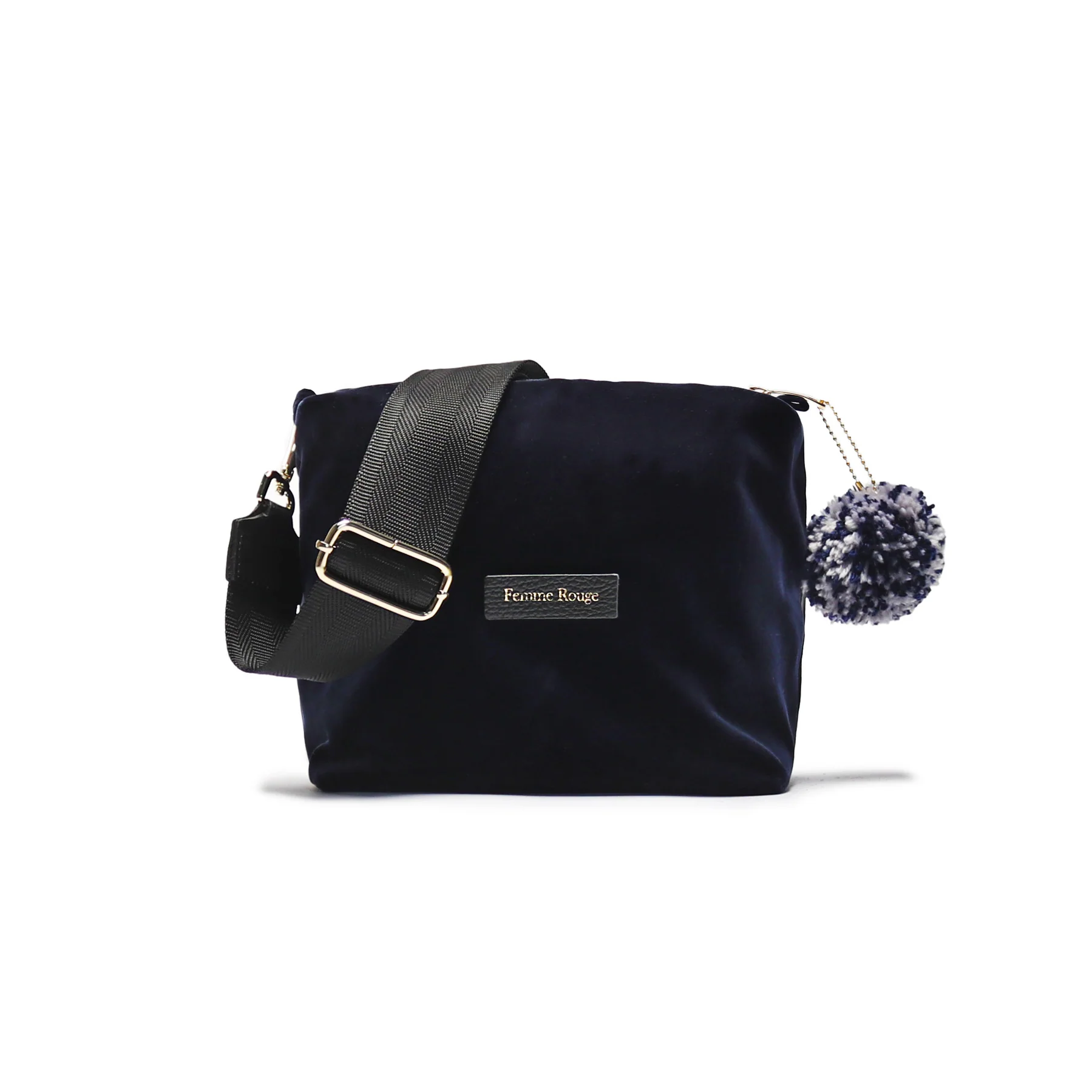 La Velvet Case FEMME ROUGE by Almala, la borsa a mano in velluto. Tracolla regolabile e removibile in tessuto. Charms in lana a pon-pon. Chiusura con cerniera in metallo. Finiture oro.