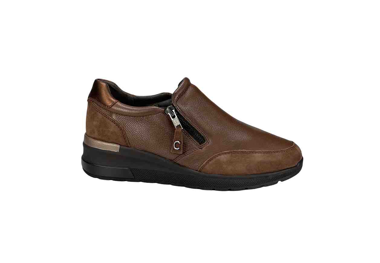 CINZIA SOFT Sneakers in pelle in tinta unita, zip laterale e tacco a zeppa.