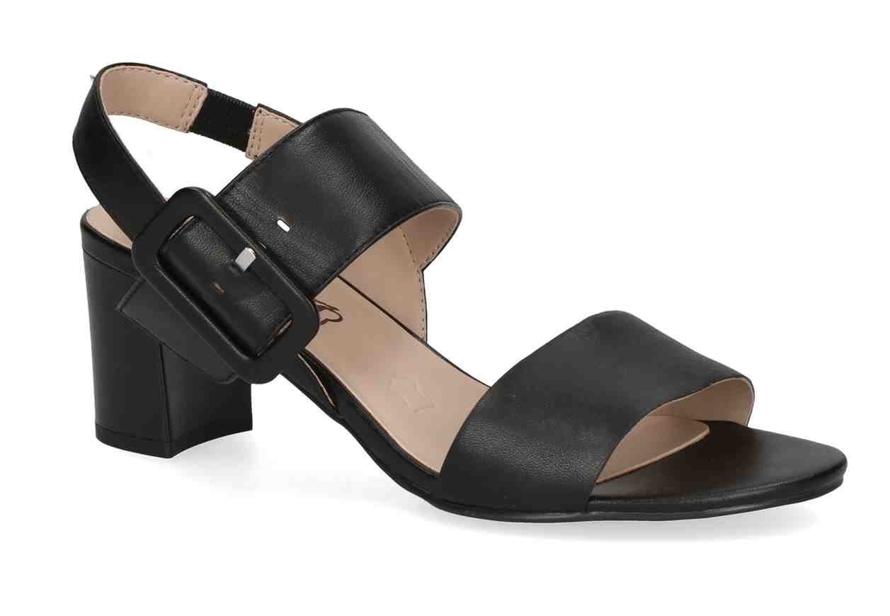 Questo décolleté con tacco largo è la scelta perfetta per chi cerca eleganza e stabilità in un’unica calzatura. Le fasce ampie avvolgono il piede con stile, mentre il cinturino posteriore regolabile con maxi fibbia garantisce una calzata sicura e personalizzata. Il tacco a blocco assicura comfort anche durante un uso prolungato, rendendolo ideale per eventi, ufficio o serate speciali.