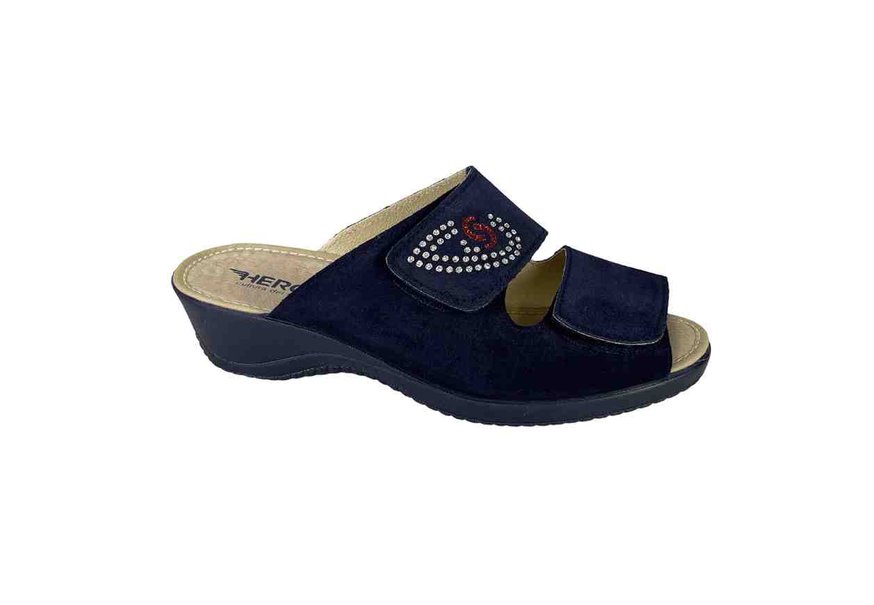 HERGOS Ciabatta in pelle scamosciata con doppio velcro, dettaglio luminoso, tacco a zeppa.