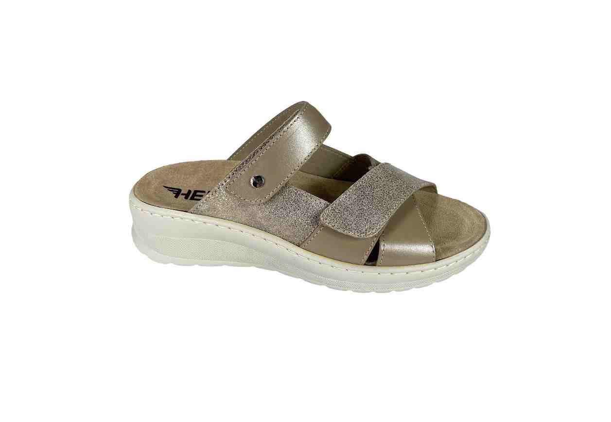 HERGOS Ciabatta a incrocio in pelle con doppio velcro, tacco a zeppa.
