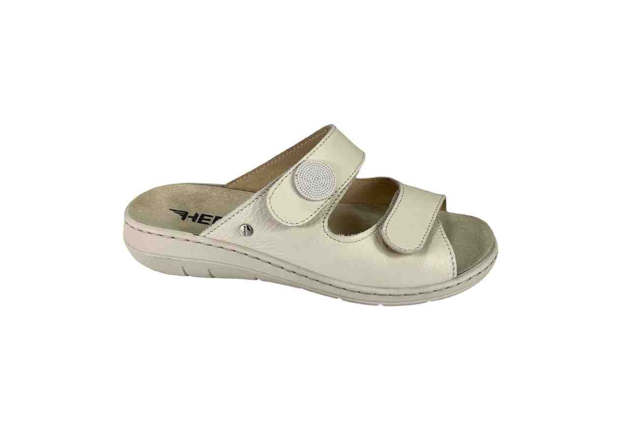 HERGOS Ciabatta in pelle con doppio velcro, tacco a zeppa.