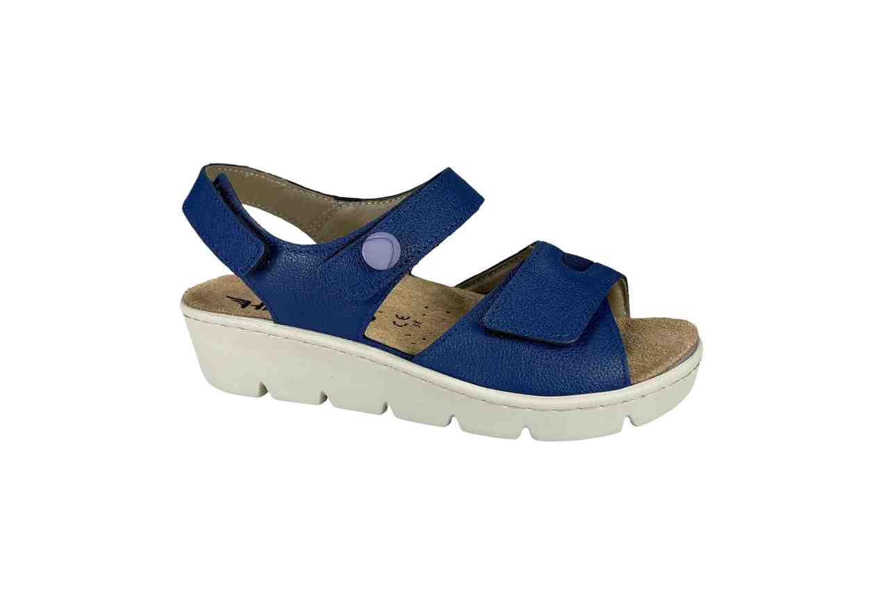 HERGOS Sandalo a incrocio in pelle con doppio con velcro, tacco a zeppa.