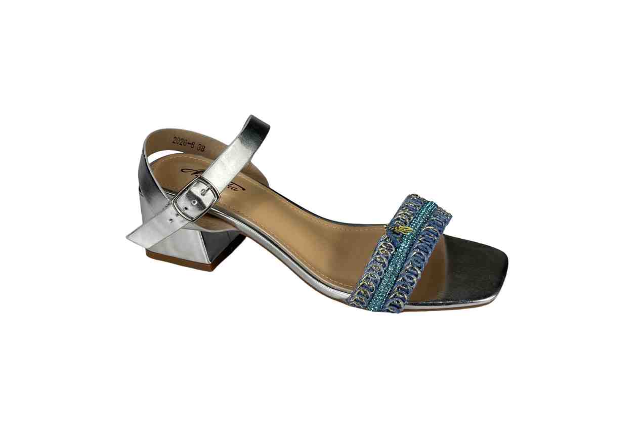 MULANKA Sandalo in ecopelle con tacco e strass in dettaglio, cinturino regolabile.