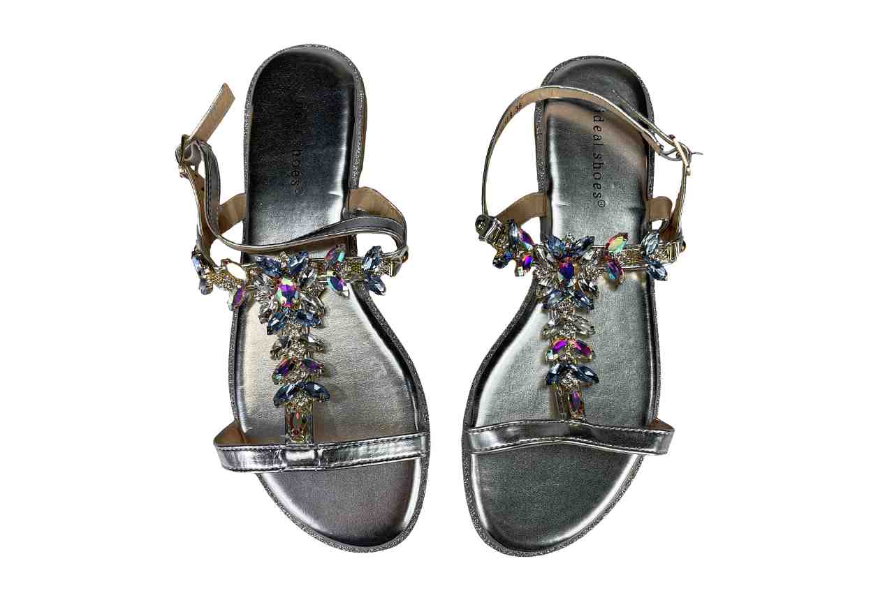 IDEAL SHOES Sandalo in ecopelle con applicazione gioiello, cinturino regolabile.
