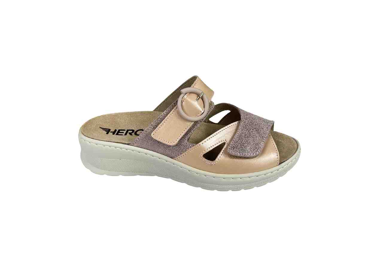 HERGOS Ciabatta in pelle con doppio velcro di chiusura.