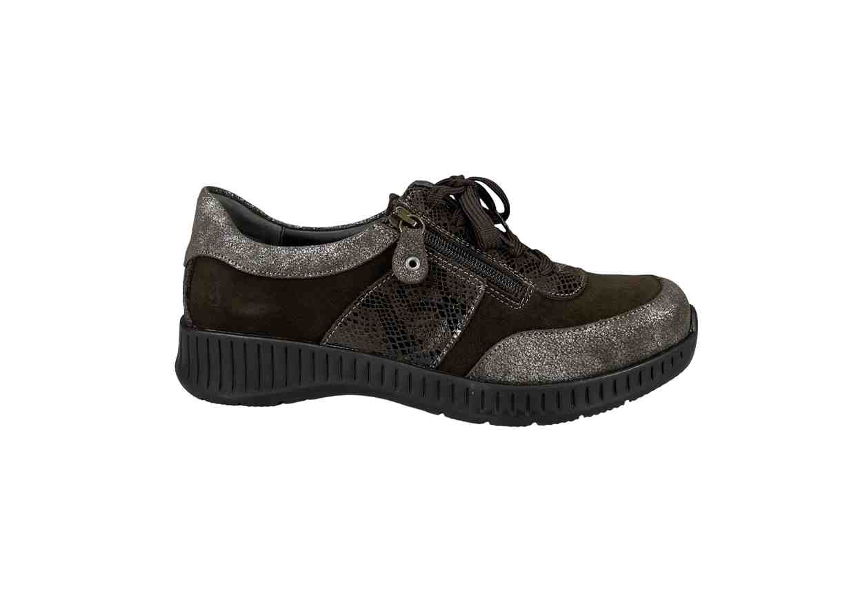 SABATINI Sneakers in camoscio con inserti in spalmato e stampa cocco con zip laterale e lacci frontali di chiusura, tacco a zeppa.