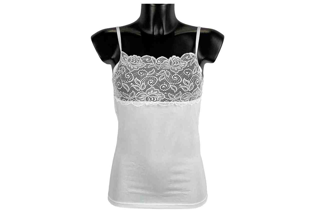 Canotta con pizzo su scollo, spalline sottili, tinta unita.