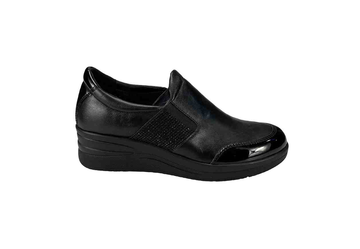 GREEN LAND Mocassino in pelle con elastici laterali con strass, tacco a zeppa.