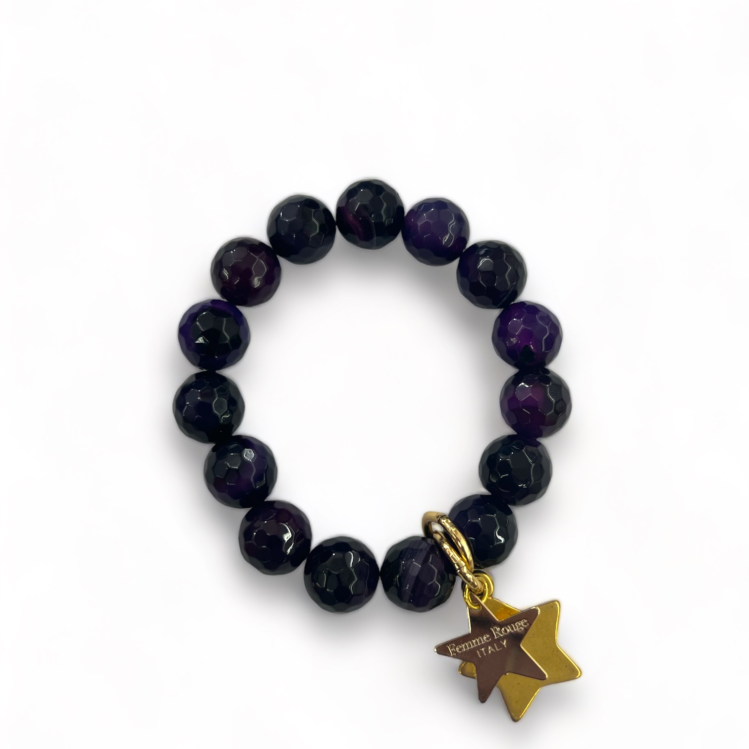 Il Bracciale Multicolor FEMME ROUGE by Almala, è un bracciale elastico di pietre naturali con ciondolo in ottone.