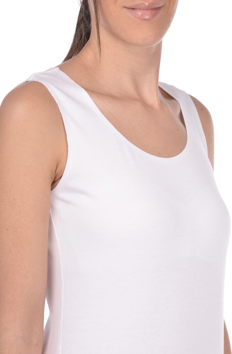 La Canotta a coste GRAN SASSO, è una canotta a costine in jersey di cotone stretch con ampio scollo realizzato con termosaldatura. Questa tecnica permette di non avere cuciture a vista e dona maggiore eleganza al capo, favorendo l’uso di accessori e giacche.