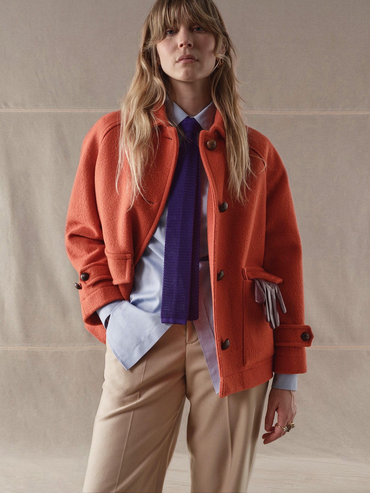 Il Cappotto over CIRCOLO 1901, è un cappotto in lana over pocketed. Chiusura quattro bottoni rivestiti in pelle, polsini con bottoni, due tasche a toppa con patta.
