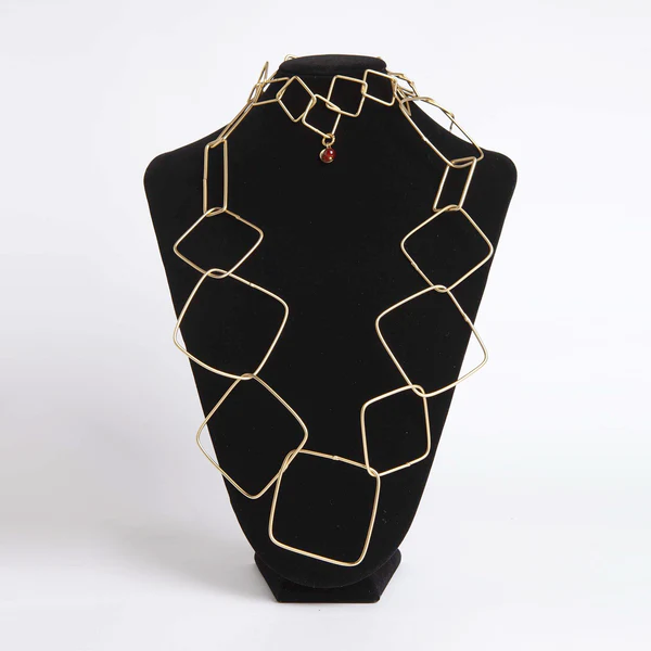 Collana Geometric ALMALA; un rigoglioso avvicendarsi di geometrie di diversa misura. Tintinnii e lucentezza per impreziosire i tuoi momenti speciali.