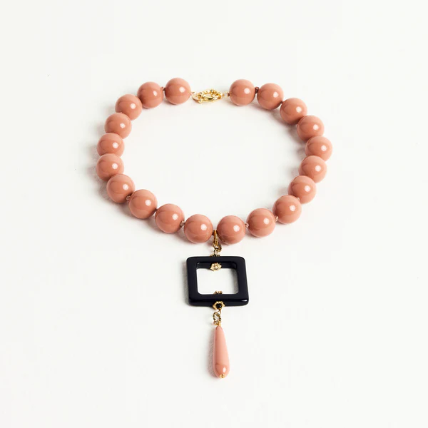 La Collana girocollo goccia Almala, fa parte della collezione Àlmala Fall/Winter 24/25 e rappresenta una reinterpretazione contemporanea di collana con perle. Il girocollo, composto da beads di grandi dimensioni è caratterizzato da un pendente a goccia sostenuto da elemento squadrato.