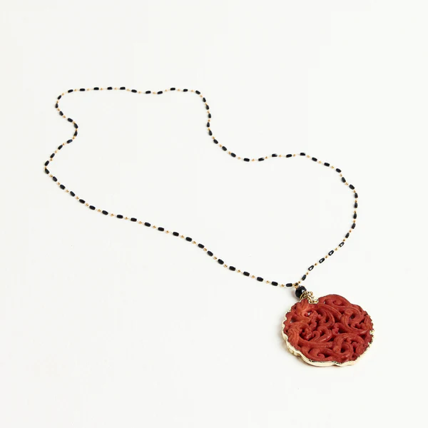 La Collana lunga Giada ALMALA, fa parte della collezione Àlmala Fall/Winter 24/25 e rappresenta una reinterpretazione contemporanea dei classici ÀLMALA: CollanaGiada. La collana, presenta dettagli a piccole sfere in pietra lungo tutta la collana con il grande pendente d’ispirazione orientale in giada.